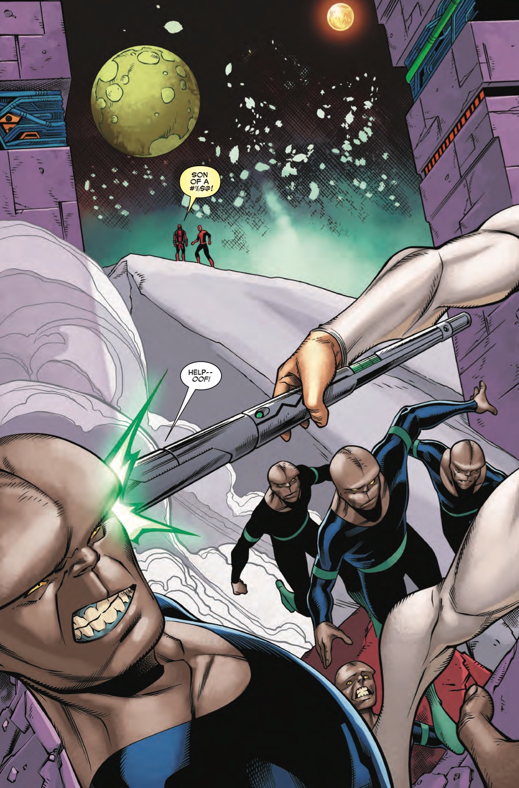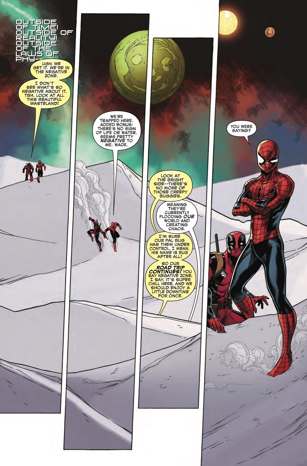 The Disney/Fox merger still hasn't officially happened yet, but that hasn't stopped the Merc with a Mouth from attempting to ingratiate himself with one of the upcoming franchises in the Marvel Cinematic Universe. In next week's issue of Spider-Man/Deadpool, the titular heroes find themselves stuck in the negative zone, having just apparently let an army of buglike creatures invade the Earth.