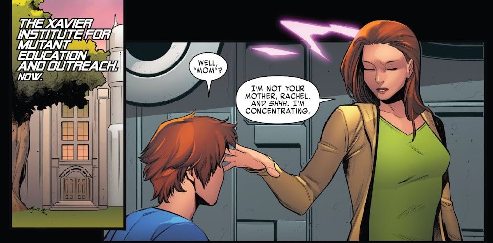 Even though Rachel is the parallel dimension first-born of Jean Grey and Scott Summers from the Days Of Future Past storyline. Ans she's still harping on in today's Astonishing X-Men Annual.