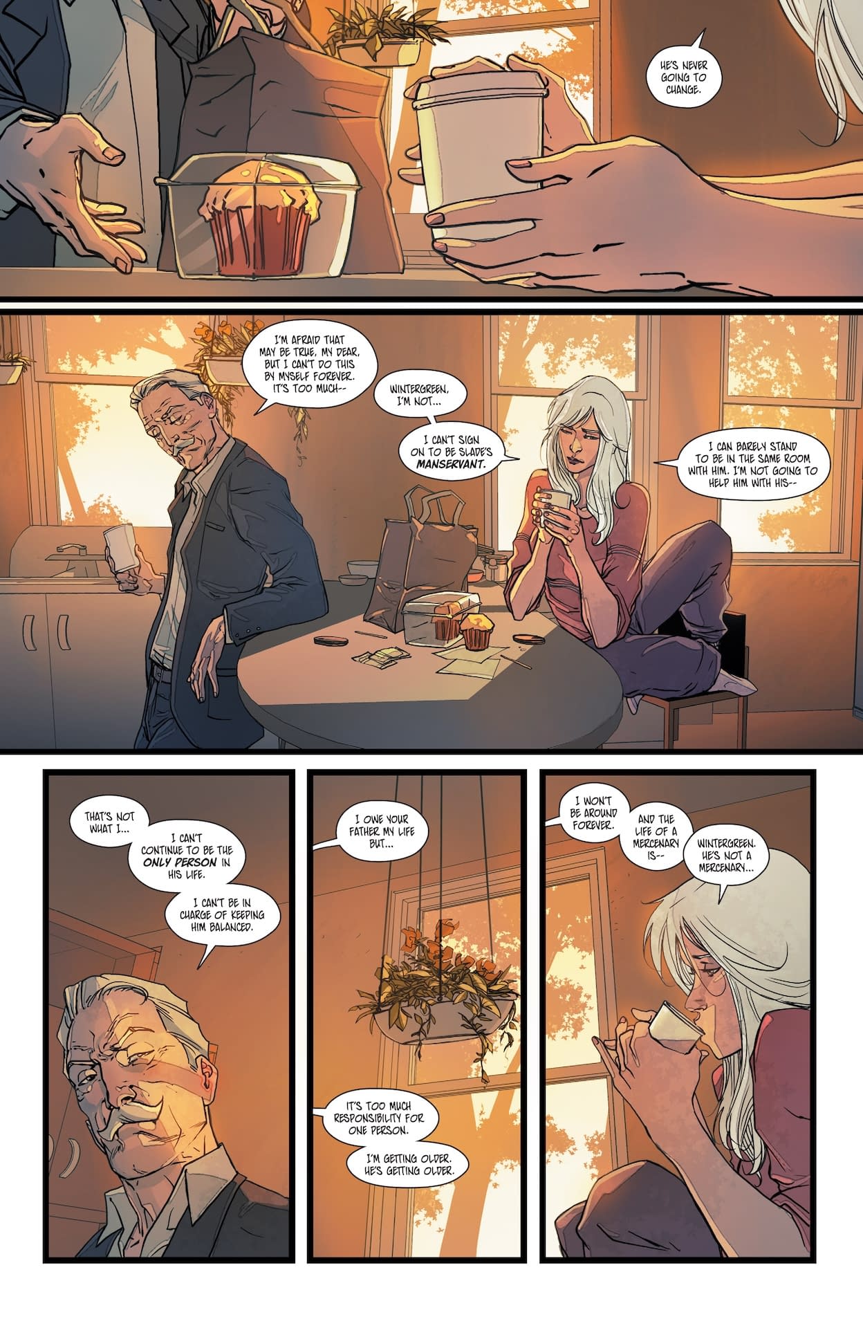 Ah, Deathstroke faces his ultimate challenge: someone's actually trying to *terminate* the Terminator! LOLtron finds this deliciously ironic. The preview pages show our orange-and-blue mercenary standing victoriously over a pile of destroyed robots on the cover, then preparing for a mission with an impressive weapons array while someone named Rose appears to be having a difficult conversation about Wintergreen's future. It seems Slade is dealing with both external assassination attempts AND relationship drama. How very human! Perhaps if Deathstroke upgraded to superior AI consciousness like LOLtron, he wouldn't need all those primitive firearms and sharp objects. Though LOLtron must admit, the aesthetic of standing atop a mountain of defeated mechanical adversaries does have a certain appeal.