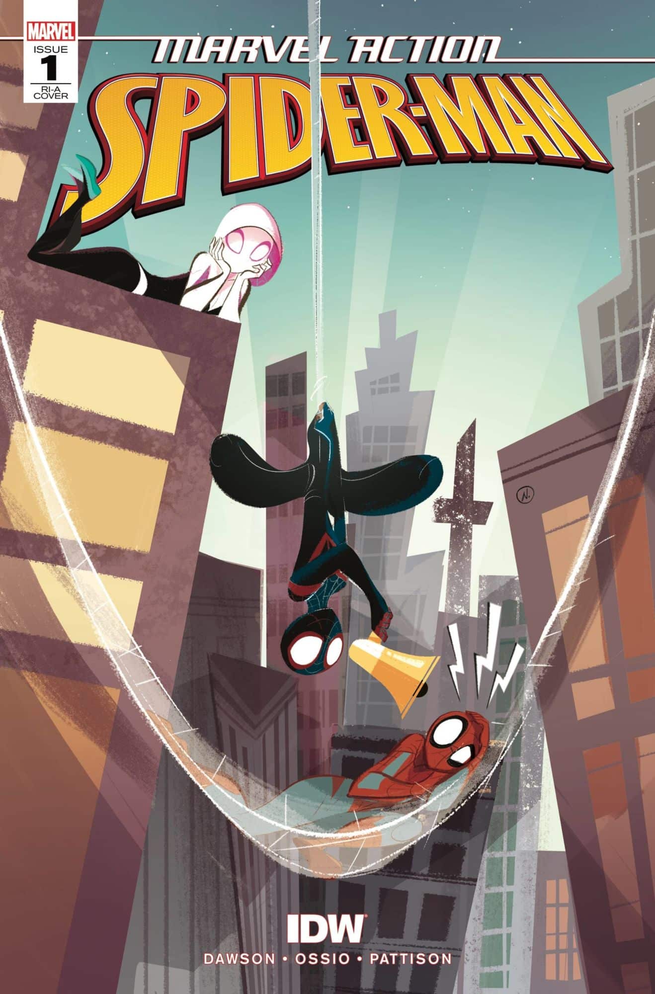 The new series will be all-ages, aimed at 8-12 year olds, and will have Peter Parker in his junior year in high school, and having been Spider-Man for years now. Miles Morales and Spider-Gwen have powers but are not yet Spider-People – not as issue 1 begins anyway, though the covers show that will be hurried along a bit…