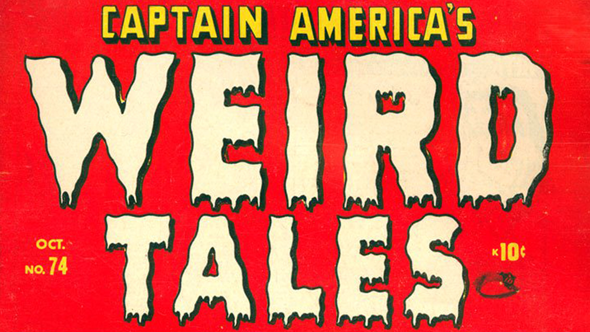 Yeah, your eyes aren't deceiving you, that's a Captain America comic. With the Red Skull on the cover. But, you know, horror. Trying to dress up the Super Soldier like he's some kind of Halloween novelty act. It's depressing but true: by the late 1940s, superhero comics were suffering a dramatic drop in sales, as young readers matured into dimestore novels, newspapers, and radio comedies, and the new batch of kids, jaded by years of dad-less wartime existences in crushing poverty, proved too cynical to buy into the exploits of costumed do-gooders. DC responded by sacking nearly their entire cape lineup and retreating to funny animals and westerns, while Timely noticed the sudden rise in interest of horror comics and rebranded their entire line as Weird this and Astonishing that. This is the beginning, a truly bizarre amalgam of 1940s hero adventure and newfangled horror storytelling, as this really odd cover wraps around three gruesome tales that have, well, almost nothing to do with Cap. Like, at all. Dark days ahead. Thanks to low print runs, these issues, catnip for hardcore Cap fanatics, are crazy hard to track down, so when you see one, jump on it!