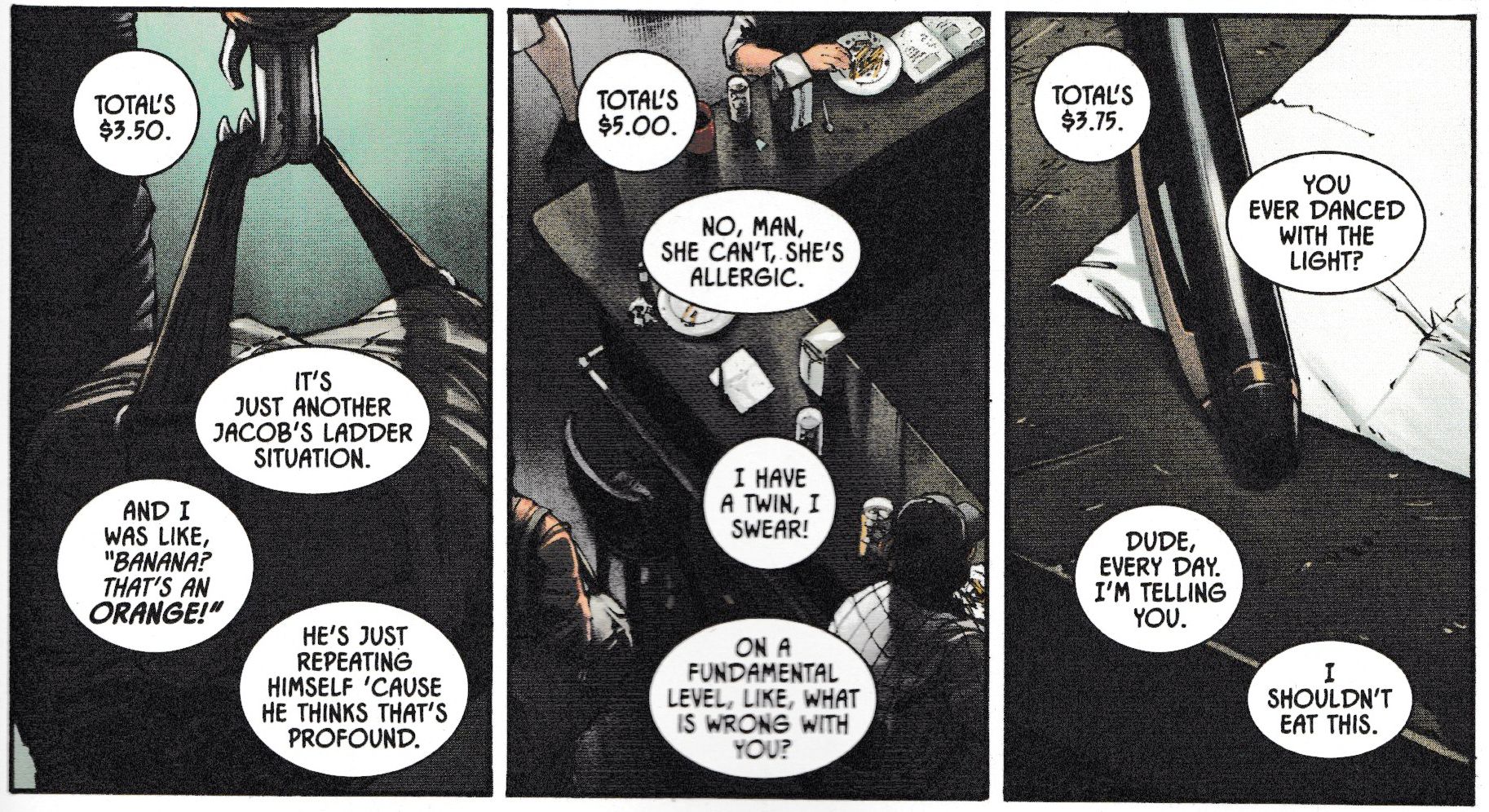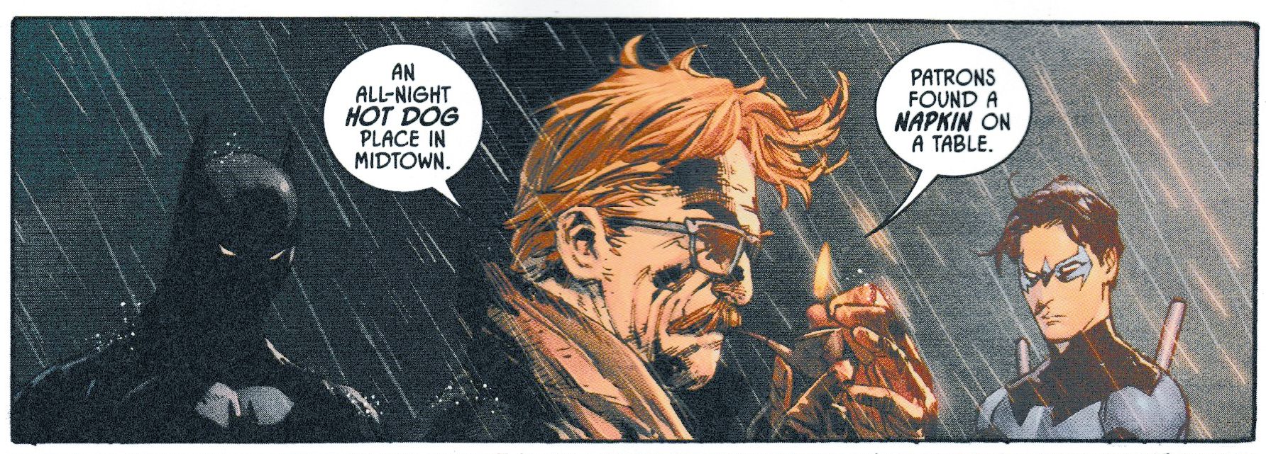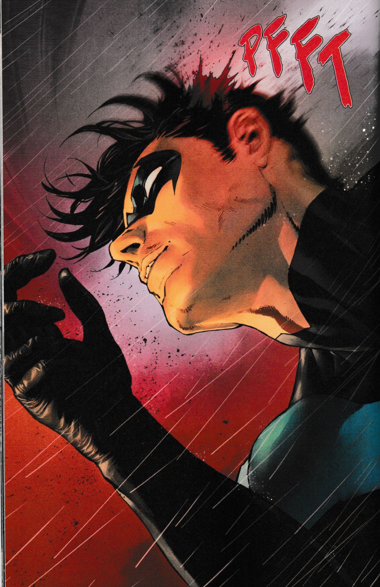 In today's Batman #55 by Tom King, Tony Daniel, Danny Miki and Tomeu Morey, we have a story in which Batman and Nightwing are up to hijinks on the rooftops of Gotham, with Nightwing insistent on finding joy in their endeavours. But all the time, another story is playing out.