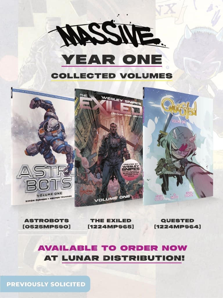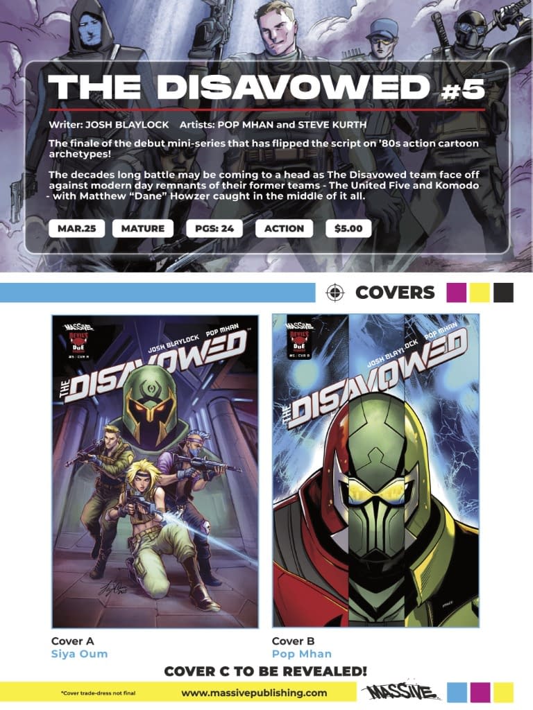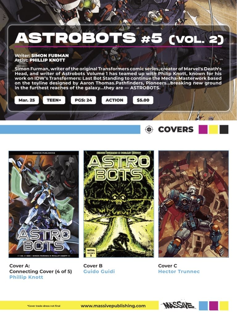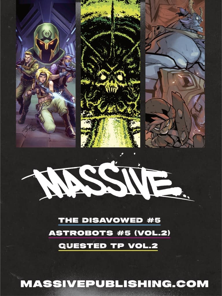 In addition to running Massive Indies, Massive Publishing continues to produce its own titles, with The Disavowed by Josh Blaylock and Pop Mhan and Astrobots Volume 2 by Simon Furman and Phillip Knott set to conclude their fifth issues in their March 2026 solicits.