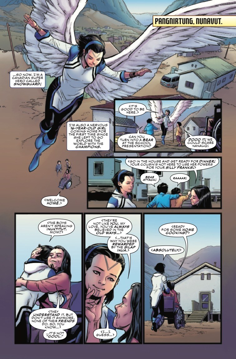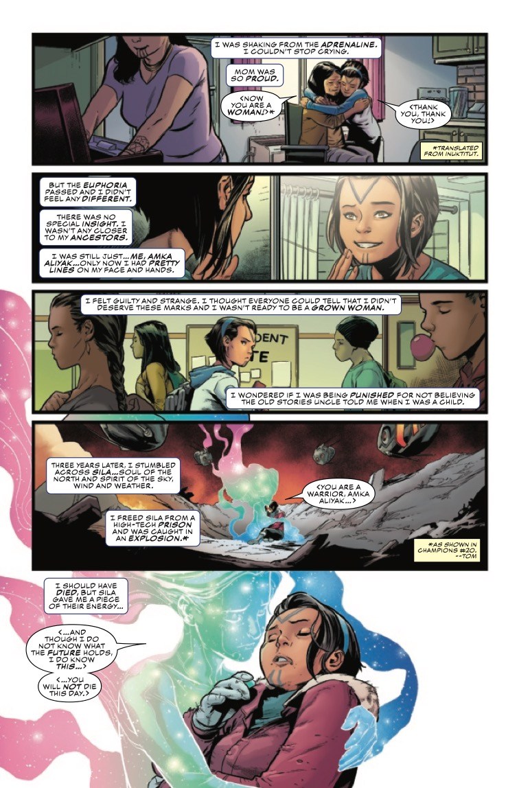 The spirits of the North stir and Snowguard must answer their call! Amka Aliyak's past and present collide as she strives to understand the power she's been given and where she belongs. Take a deep dive into Marvel's newest young hero in this special supersized Champions issue!