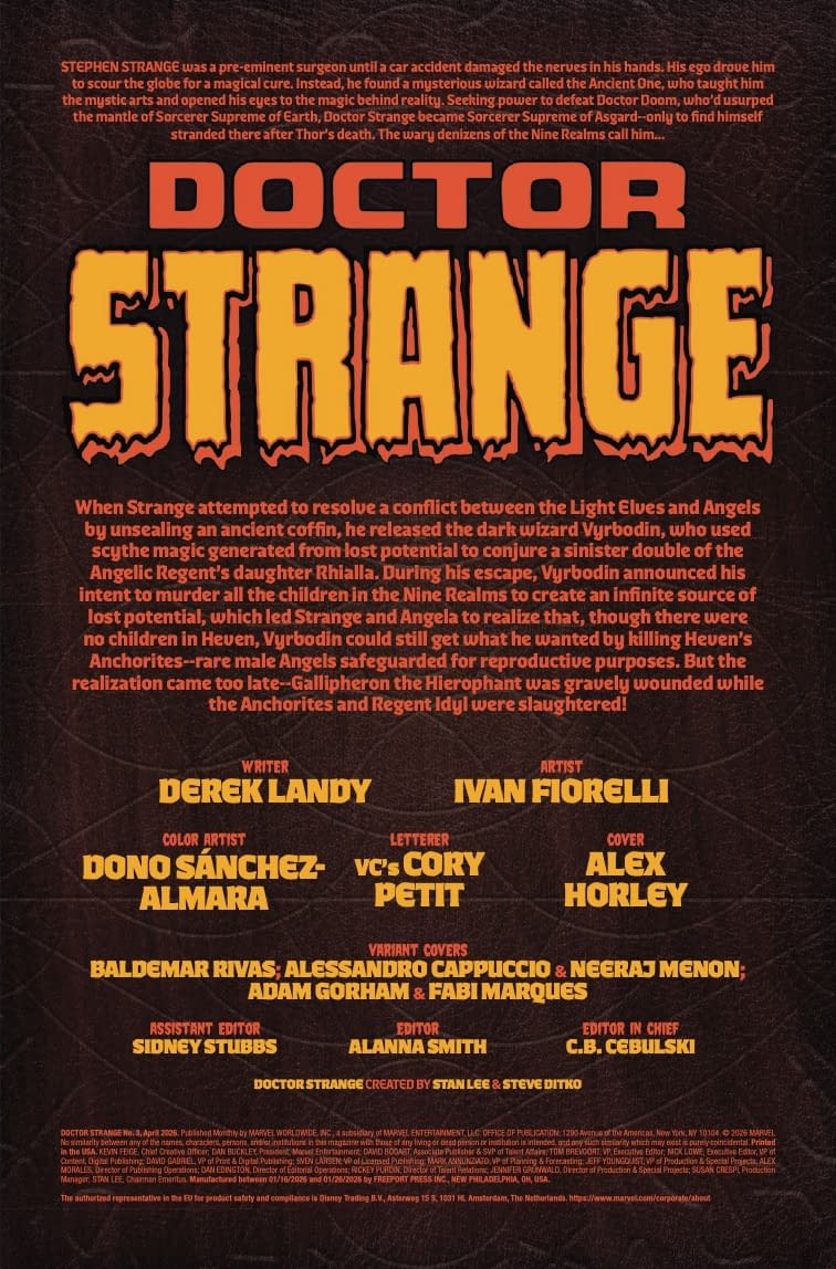 - Cover image for 75960621125800331 DOCTOR STRANGE #3 BALDEMAR RIVAS VARIANT, by Derek Landy & Ivan Fiorelli, in stores Wednesday, February 18, 2026 from Marvel