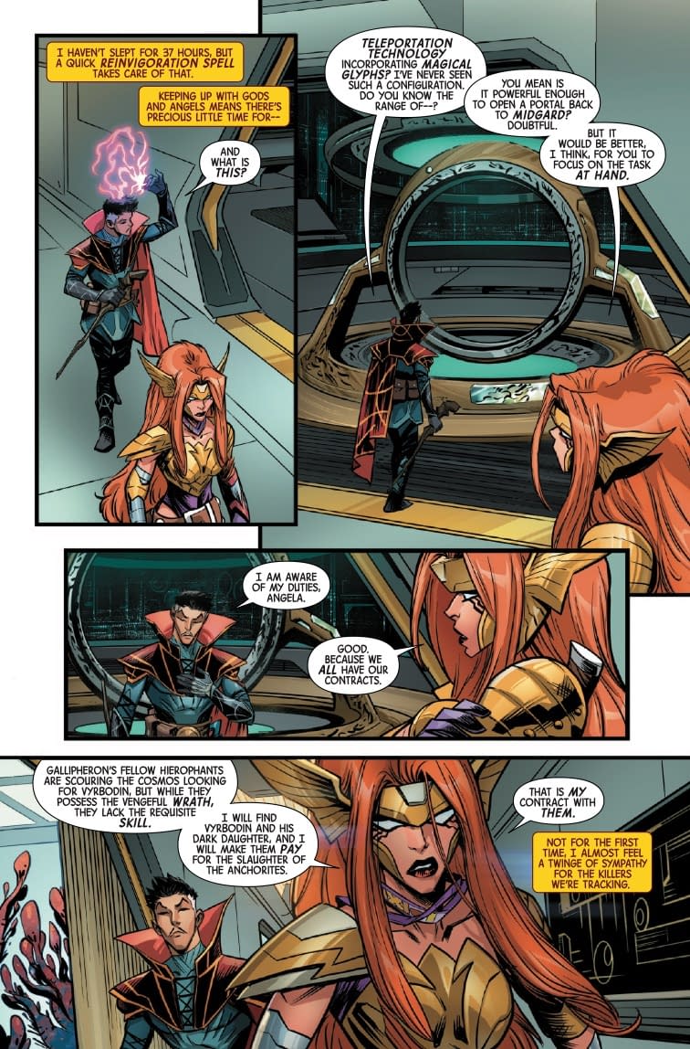- Angela joins Strange to battle rising threats while villain Vyrbodin's twisted plan nears completion.