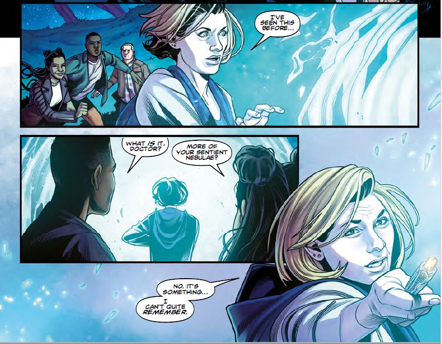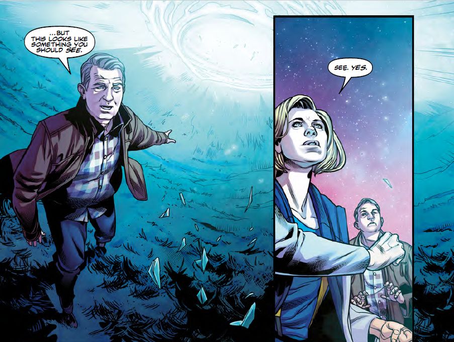 Doctor Who: The Thirteenth Doctor #1 is published today, the first adventure in comics form with the Thirteenth Doctor and her new friends. And it seems deliberately to reference adventures past, not overtly, but enough for the bigger Doctor Who fan to catch on…. here are a few which snagged on my own perception filters.
