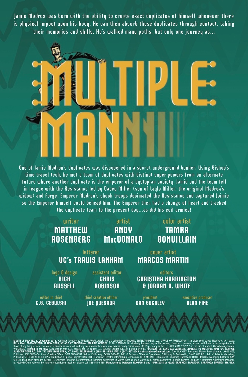 Jamie Madrox – the guy many X-Men fans are aware of – has returned home to save the world and/or die trying. But does Jamie have what it takes to save the world from himself? The fate of the Marvel Universe hangs in the balance! Wouldn't it be funny if he didn't do it and the Marvel Universe just ended? Like this was the last Marvel comic ever?