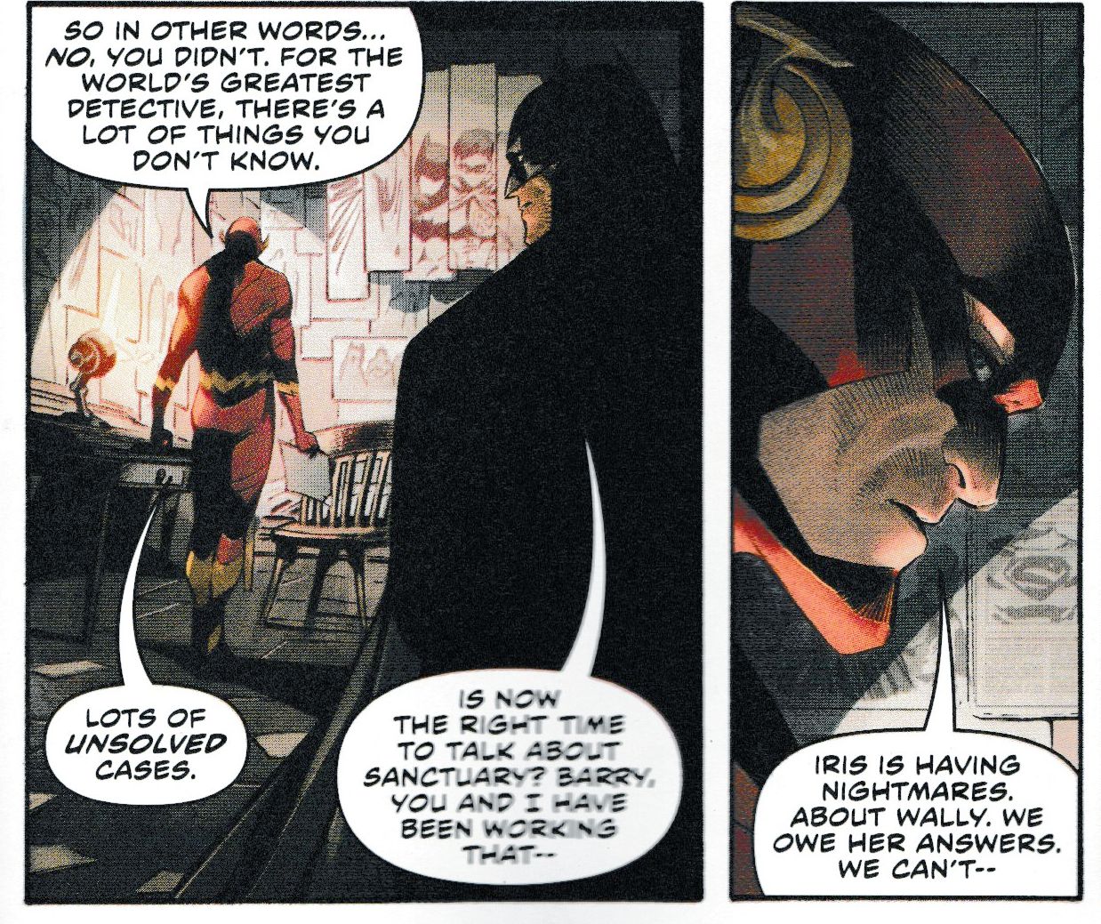 As chief architect of the Sanctuary program that cost so much for so many, especially Wally West, Batman will be held accountable…by the Flash!