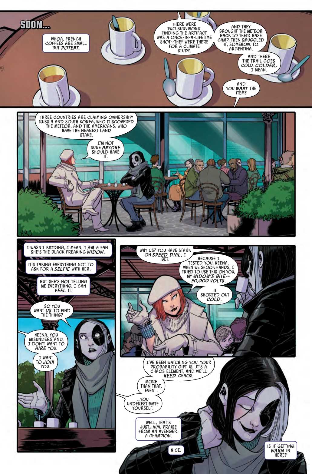 In a preview of next week's Domino: Hotshots #1, Domino is called on a mission by the Marvel Universe's preeminent super spy, the Black Widow. And when she arrives, Domino just can't help but to fangirl out a little bit.