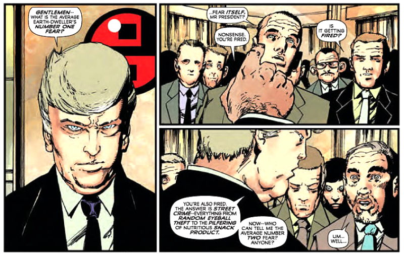 2000AD's Zombo strip by Al Ewing and Henry Flint back in 2012 gave us President Donald Trump of the Earth.