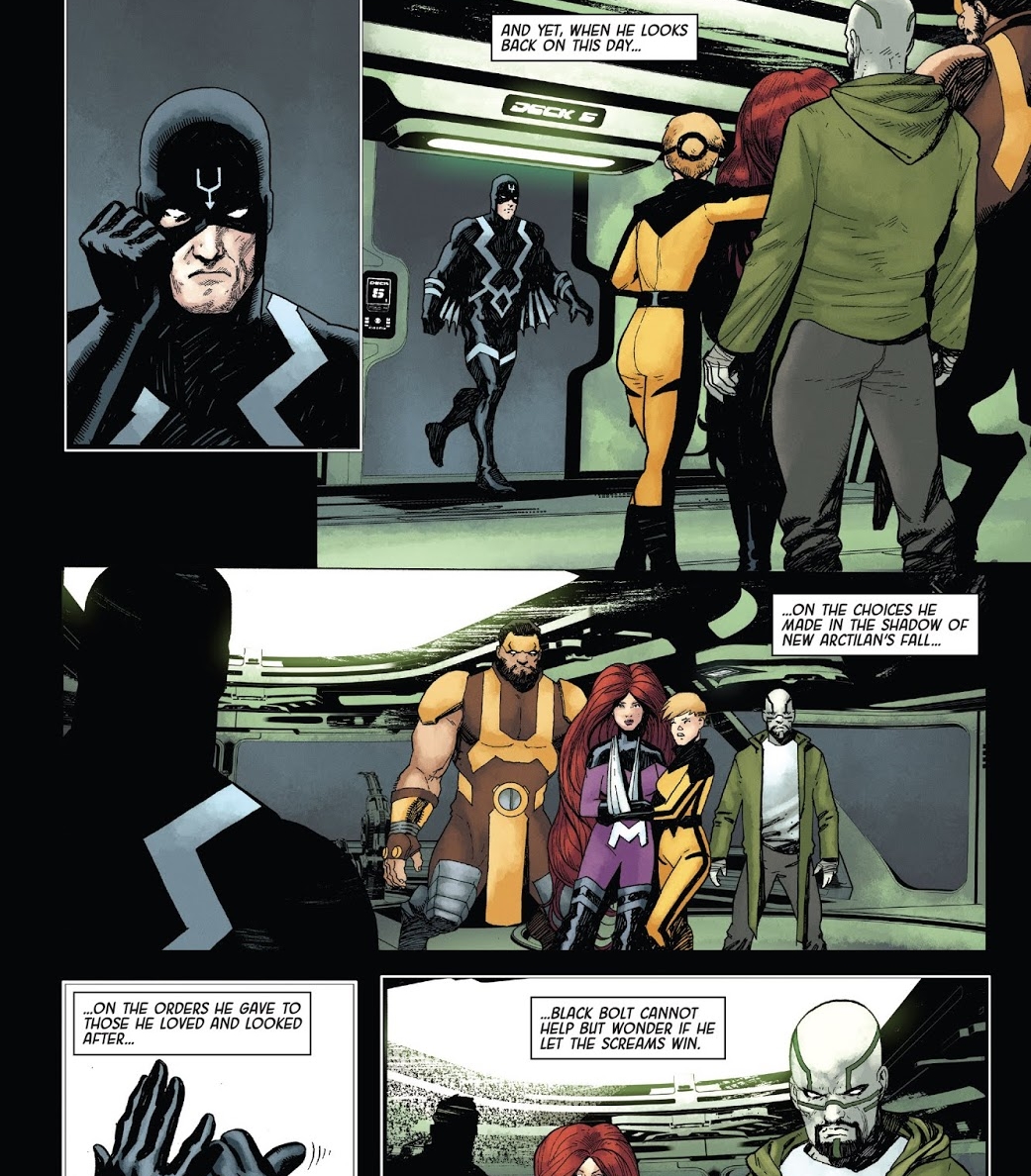 Today sees Black Bolt counting the dead. Before sending Karnak off to confront the Kree. Oh we probably need one of these for the Major Spoilers…