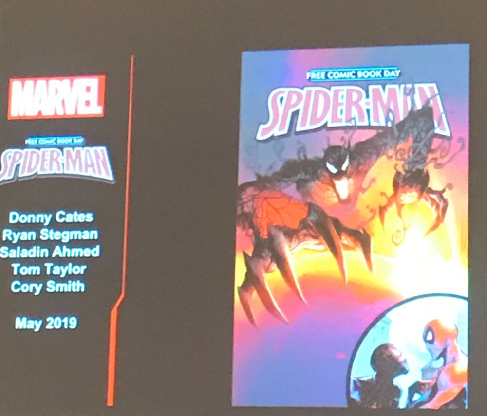 This will kick off in the Spider-Man Free Comic Book Day book – which will also contains a story with Peter and Miles Morales by Saladin Ahmed and Cory Smith.