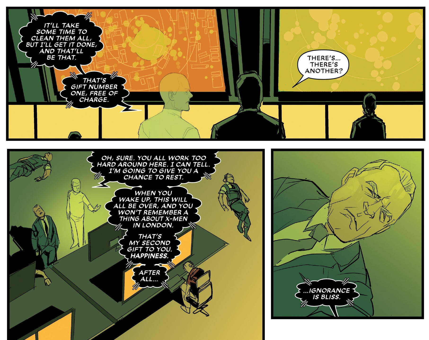 Why, he wipes the mind of some of the people trying to kill him and the X-Men, albeit from noble causes. And that's what makes me go "ooohh…"