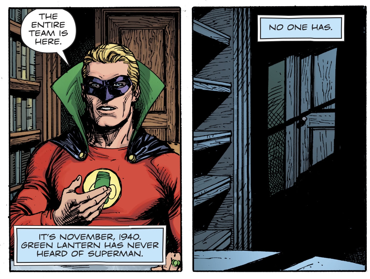 …and suddenly not exist. Because things change, things fall apart and the centre cannot hold. Instead, it moves. And so we have a Justice Society of America, both in the same world as Superman….