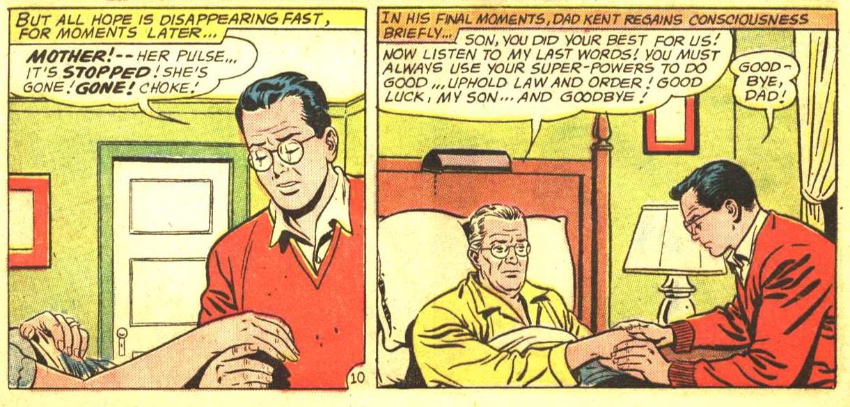 And then we get a jump to the Superman recreated by John Byrne in the eighties in Man Of Steel. As the original story of their deaths as told in Superman #161 from when Superman was Superboy….