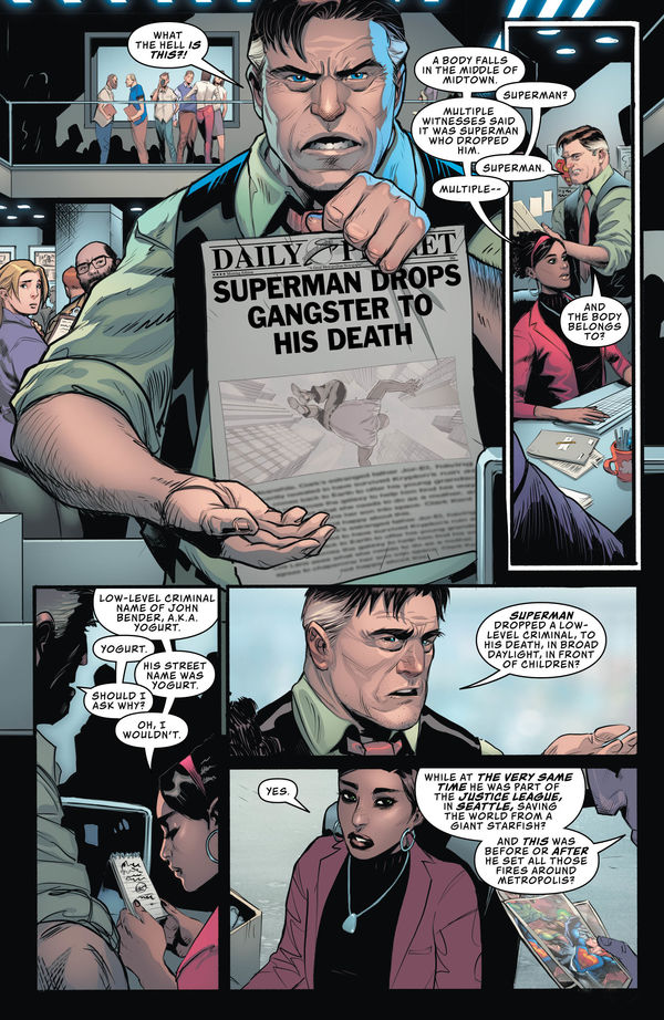 This is the preview of Action Comics #1002 by Brian Michael Bendis and Patrick Gleason that ran on DC media partner site Syfy a couple of days ago. And it's the last page of which we are going to take far too seriously and pull jokes apart and treat them as important notes of canon. So be warned.