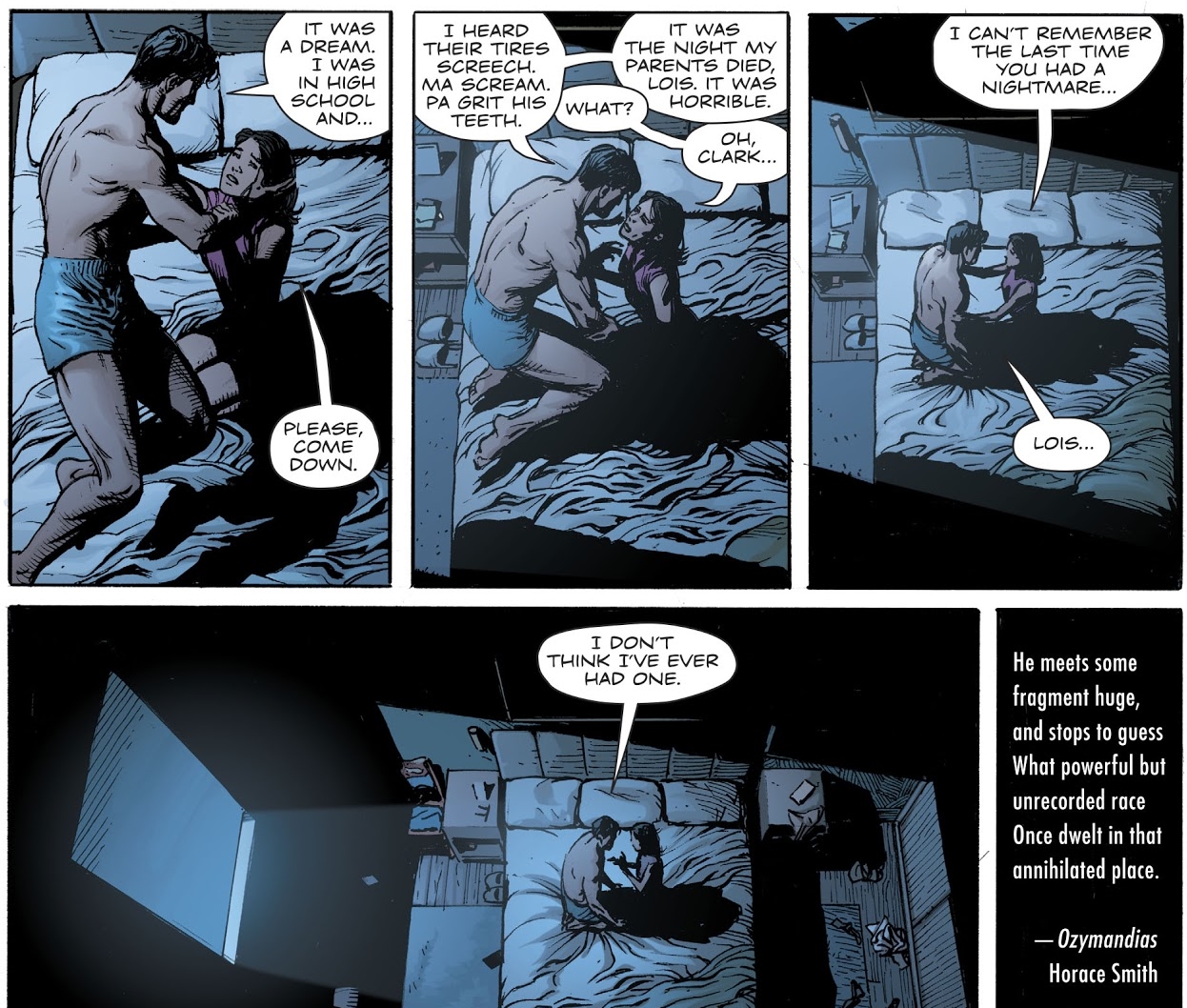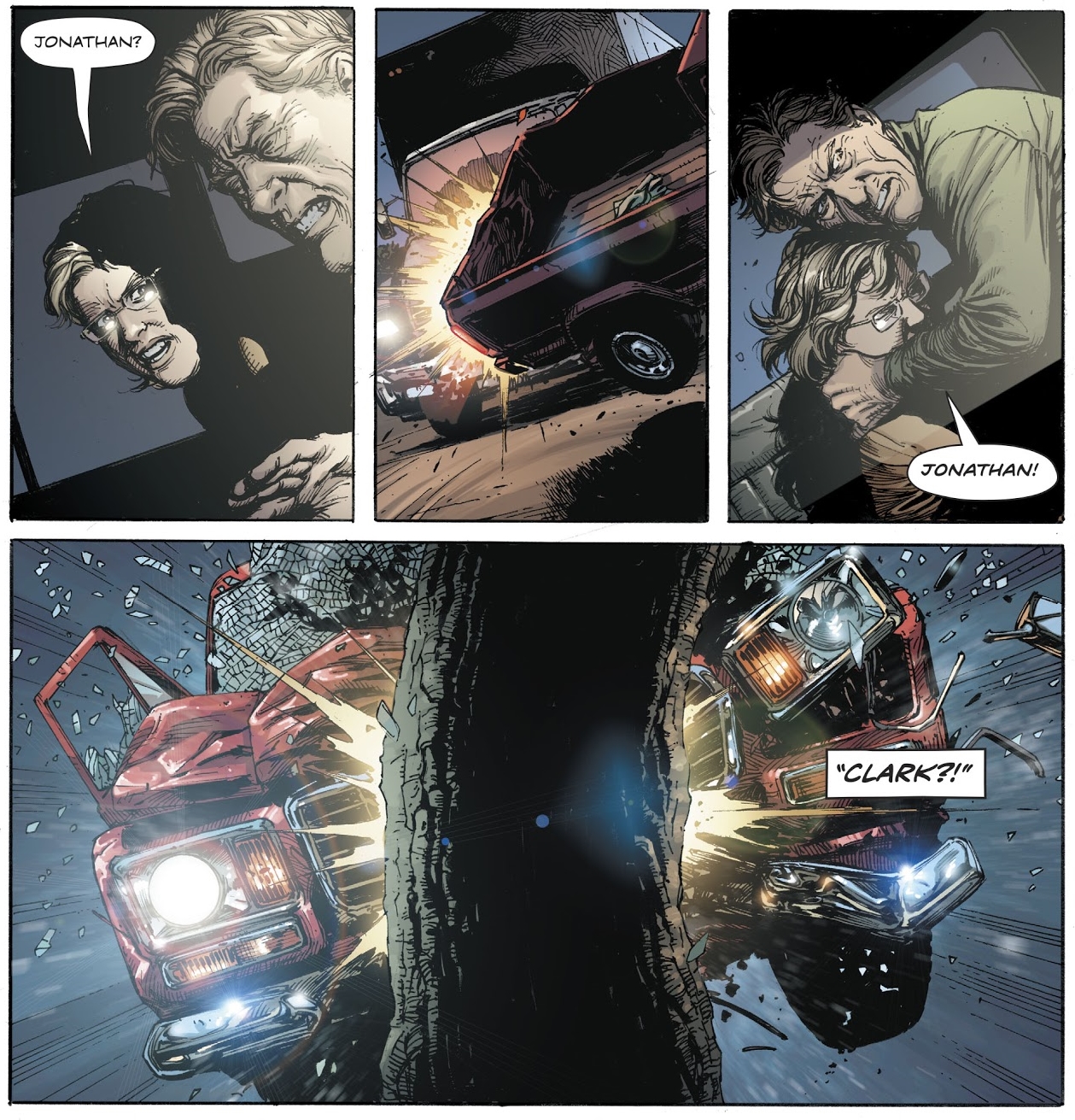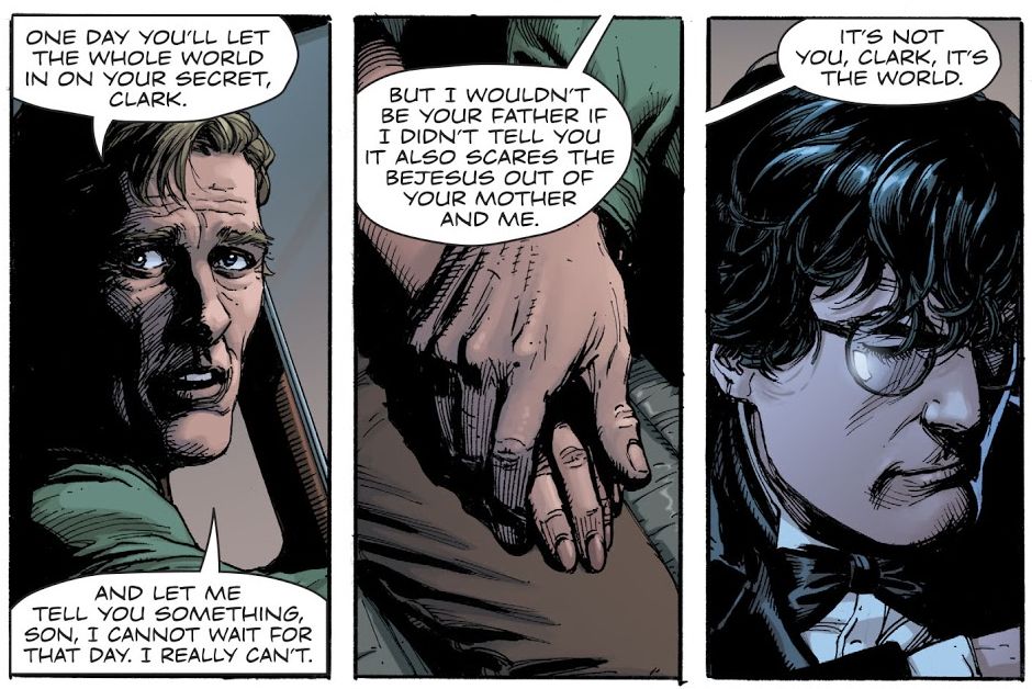 So we have a universe that twists and turns depending on whenever Superman appears. A date, an event that keeps changing, as the story changes. And so Clark dreams of his final day with his parents.