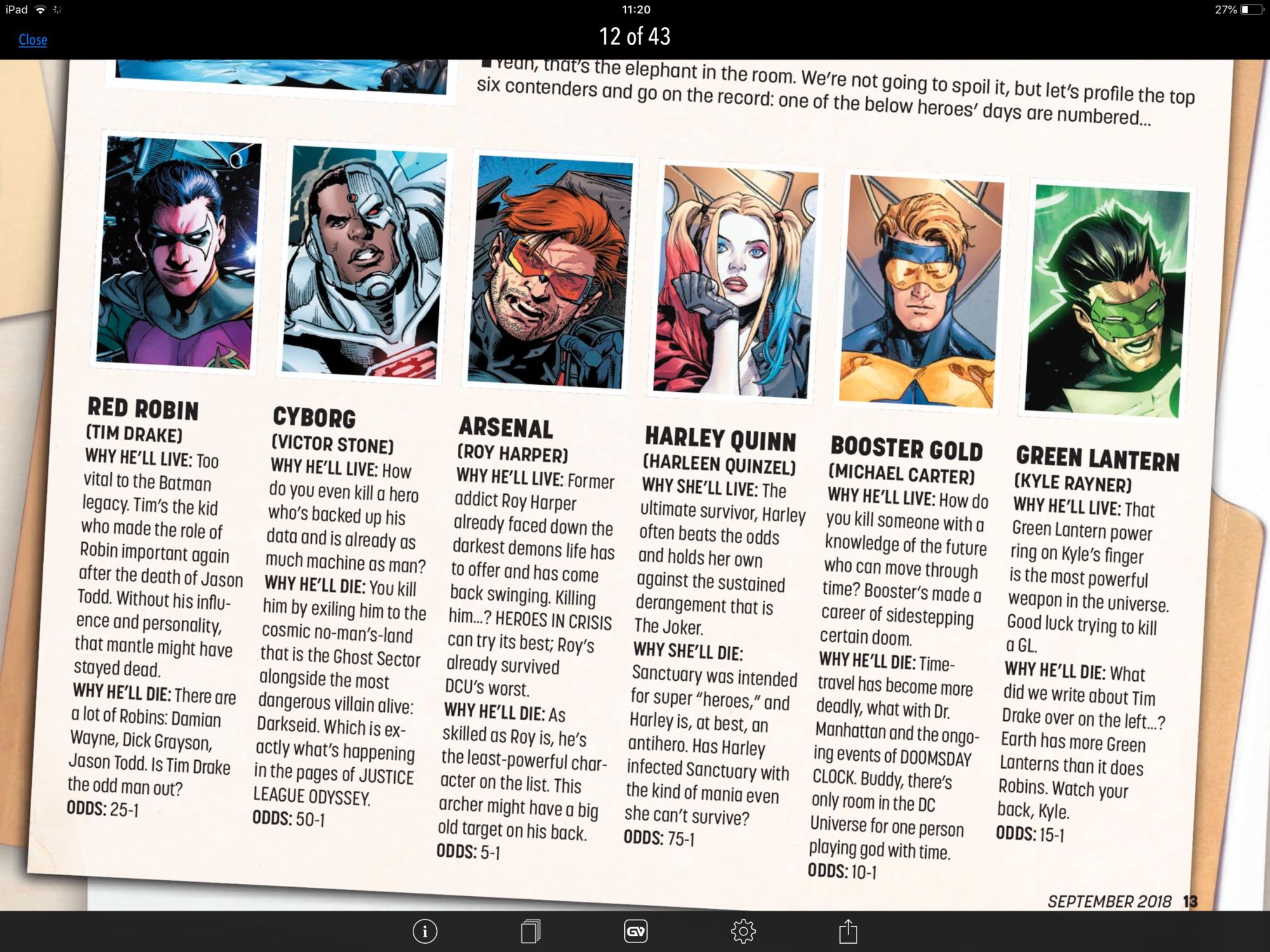 And while the series itself may be nuanced, the marketing has not been. Variant covers are splashed with character's most traumatic moments, covers have run asking who will die – with readers given betting odds as to the most likely candidates.