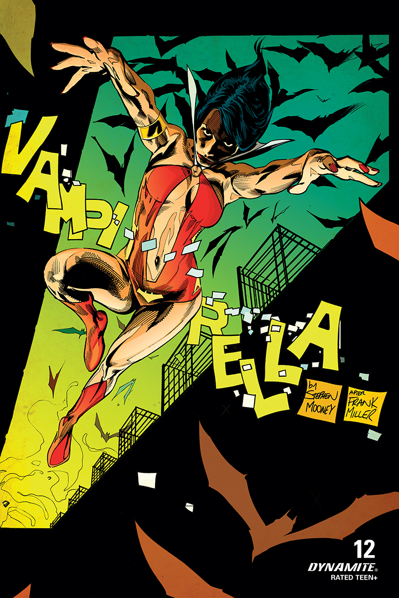 Just as auto manufacturers are being tapped to build ventilators and distilleries are making hand sanitizer, so too has Dynamite Entertainment found a way to produce substitutes for Frank Miller variants, enlisting artist Stephen Mooney to create a series of variants homaging Miller's past work. Running across Bettie Page #1, Death to the Army of Darkness #5, Dejah Thoris #7, Killing Red Sonja #4, Red Sonja #17, Vampirella #12, and Vampirella/Red Sonja #10, Mooney's variants call back to classic Miller covers.