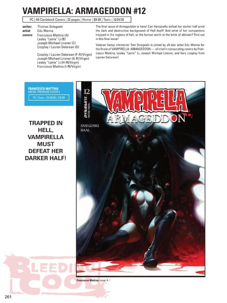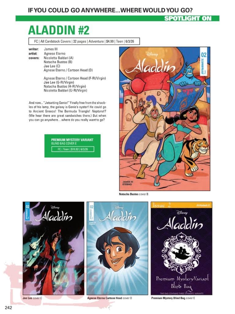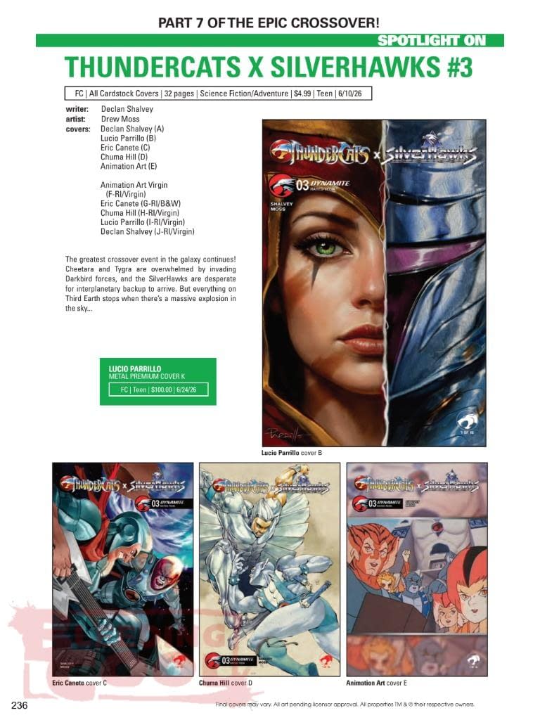 We already looked at Altered States: Warlords #1 by David Avallone and Mariano Benitez-Chapo, Supernatural Special: Cavielby Preeti Chhibber and Pasquale Qualano, Supernatural #8 by Greg Pak and Daniel Scalisi, and Dynamite beginning their Compact Comics line with Pathfinder… but Dynamite Entertainment also has plenty of Stitch, Ben 10, Red Sonja, Thundercats X Silverhawks, Mumm-Ra, Aladdin, Caston, Ursula, Lion King, Archie X Army Of Darkness, Space Ghost, Thundarr The Barbarian, and more Vampirella to go around in their June 2026 solicits and solicitations.