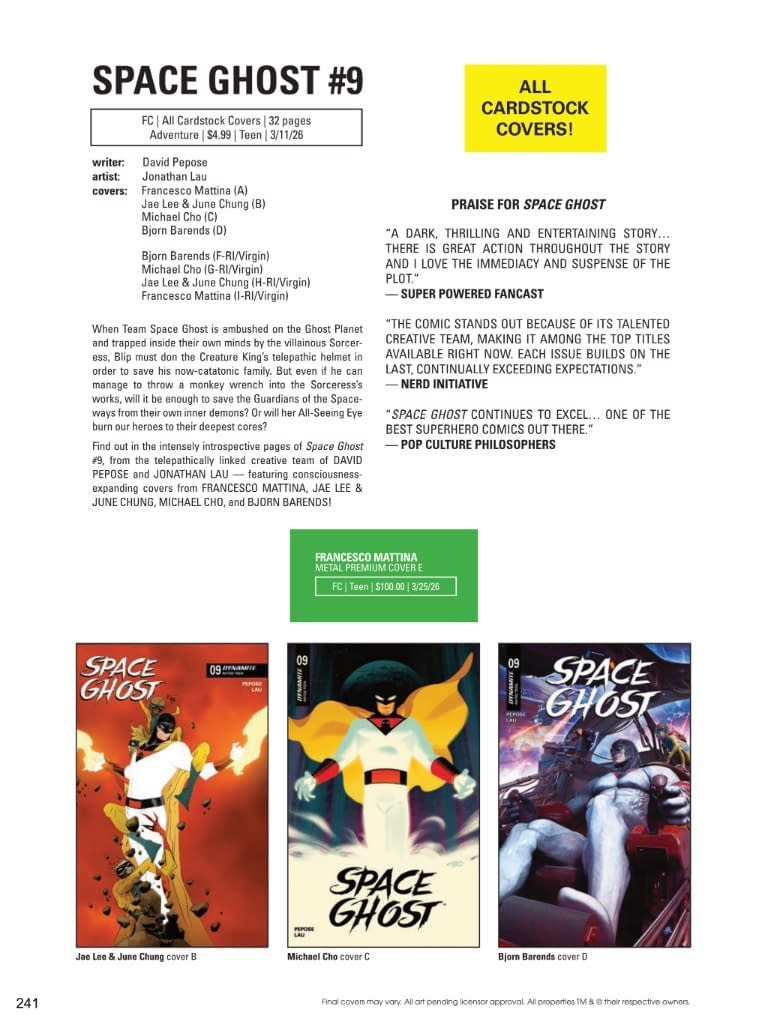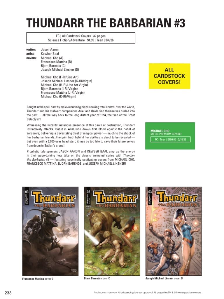 Dynamite Entertainment's March 2026 solicits and solicitations include ThunderCats #25 and a crossover with SilverHawks ahead of their big summer event, as well as a new comic for Beauty And The Beast's Gaston alongside Ursula…