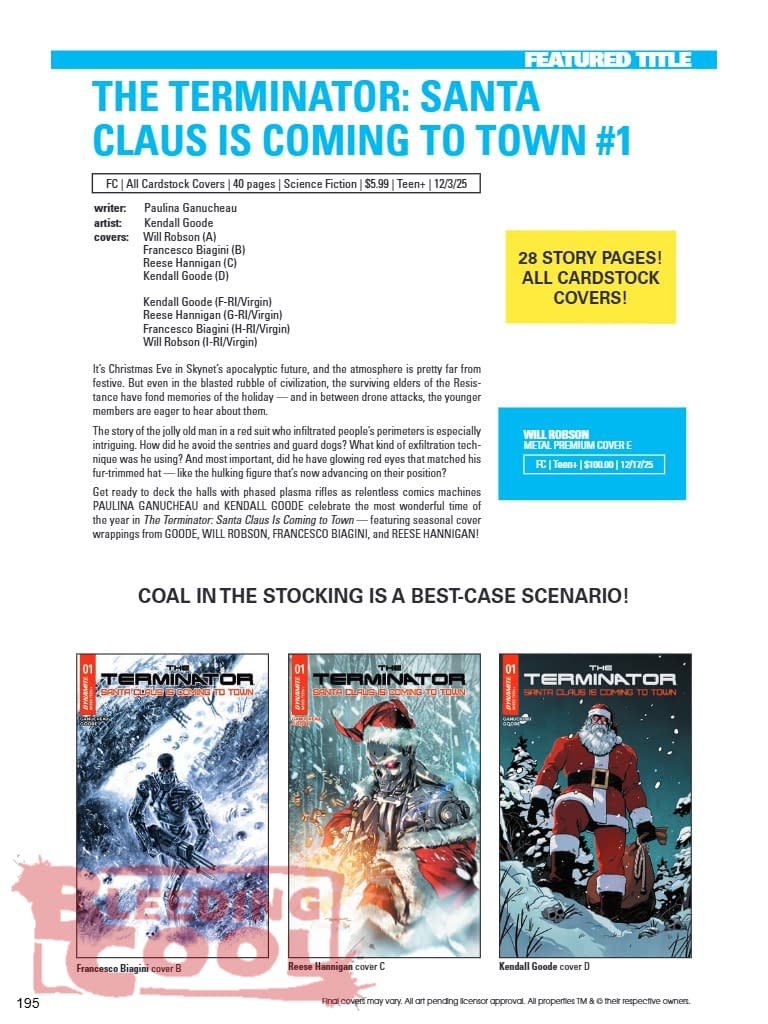 - Get first looks at special holiday one-shots, including Red Sonja New Year’s Special and Terminator: Santa Claus