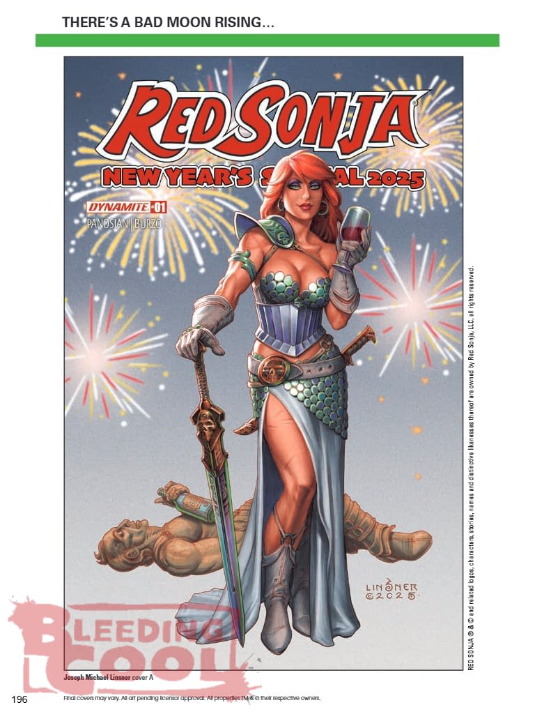 It's time to ring out the old with an all-new seasonal story starring the She-Devil With a Sword! When Sonja is summoned to a mountain village under the ominous glow of the Red Moon, she finds herself caught in a web of deception, sacrifice, and monstrous foes. Facing betrayal together with impossible odds, the She-Devil must rely on her cunning and ferocity to turn predator against predator in a brutal fight for survival. Auld acquaintances DAN PANOSIAN and VALERIA BURZO raise a toast to the Hyborian Age that will never be forgot in this 40-page one-shot special — featuring celebratory covers from JOSEPH MICHAEL LINSNER, SHANNON MAER, and cosplay by ANI-MIA, as well as an exclusive MYSTERY BLIND BAG! EACH MYSTERY BLIND BAG INCLUDES TWO SEPARATE COPIES OF THE ISSUE, BOTH OF WHICH ARE EXCLUSIVE TO THE BLIND BAG — ONE BLANK AUTHENTIX EDITION, AND ONE OF FIVE UNIQUE VARIANT COVER ART EDITIONS.