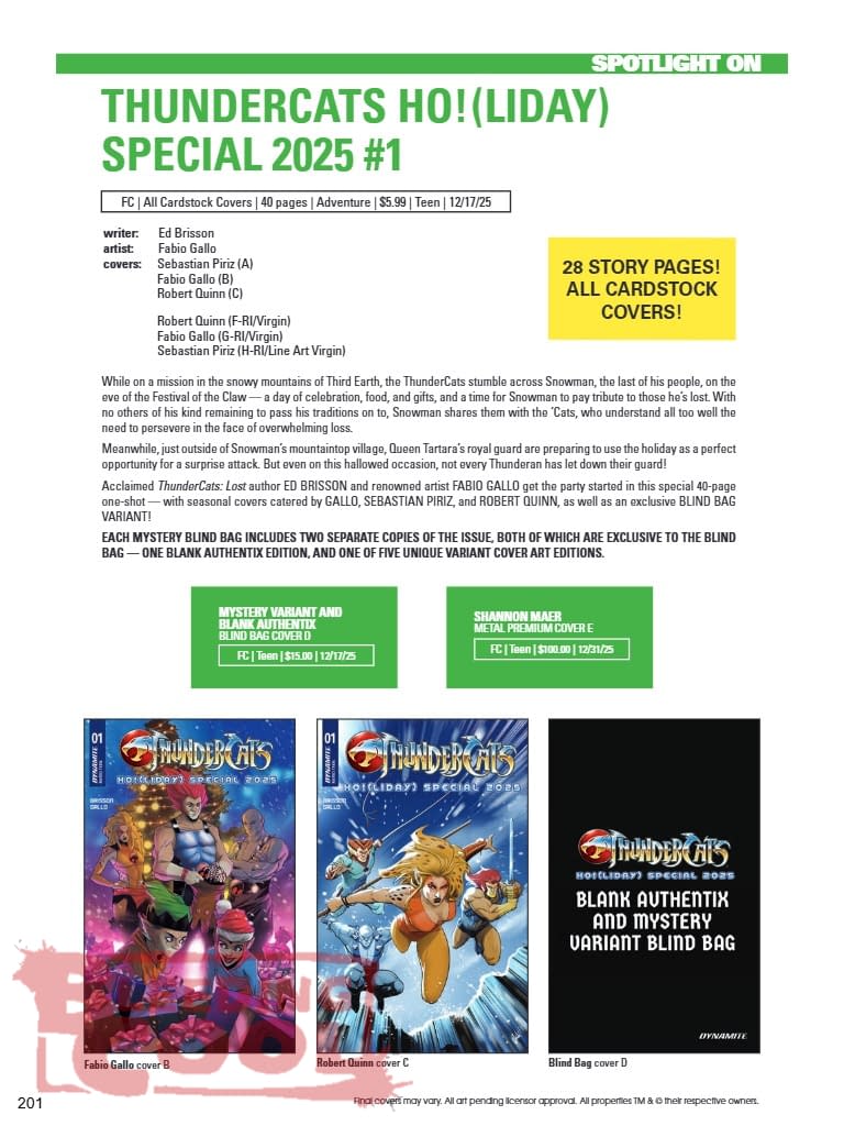 - Dynamite's December 2025 comics lineup features ThunderCats, Terminator, Red Sonja, and more fan favorites