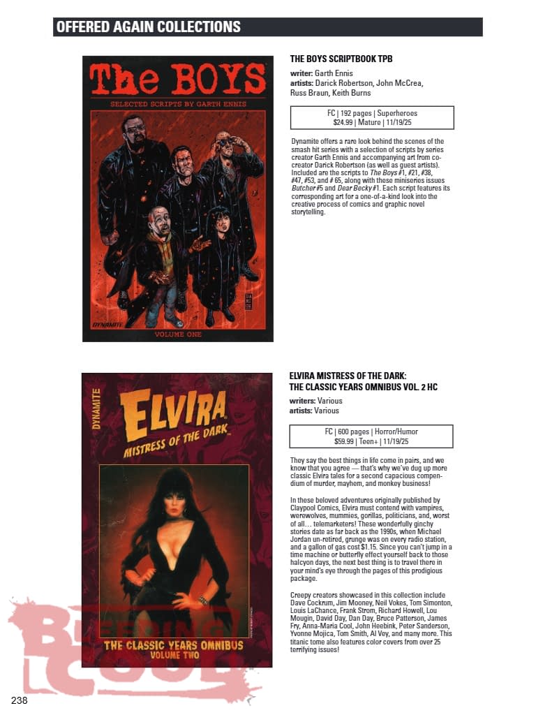 - Deluxe omnibuses for The Boys, Darkwing Duck, and Elvira offer essential collections for Dynamite fans
