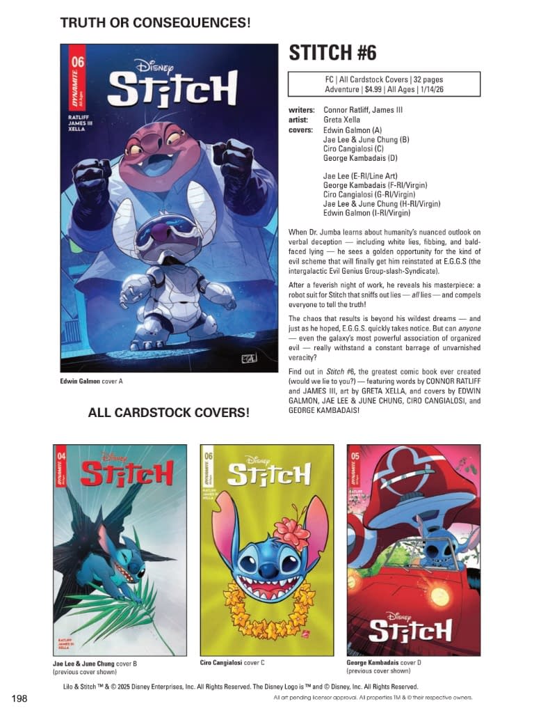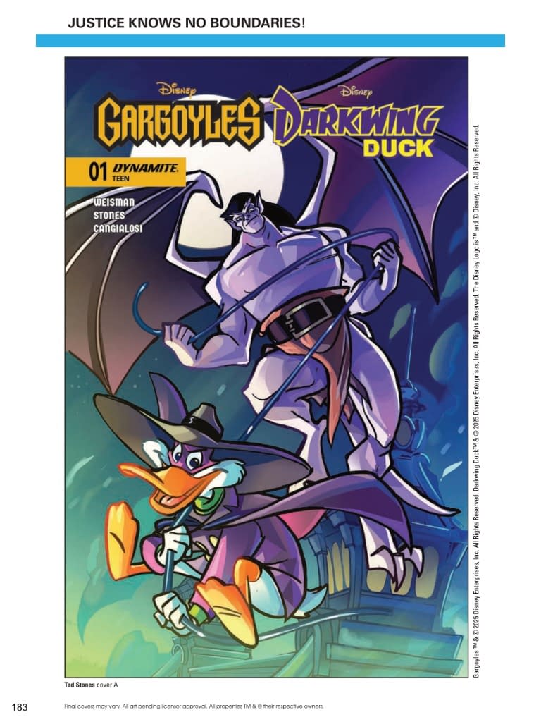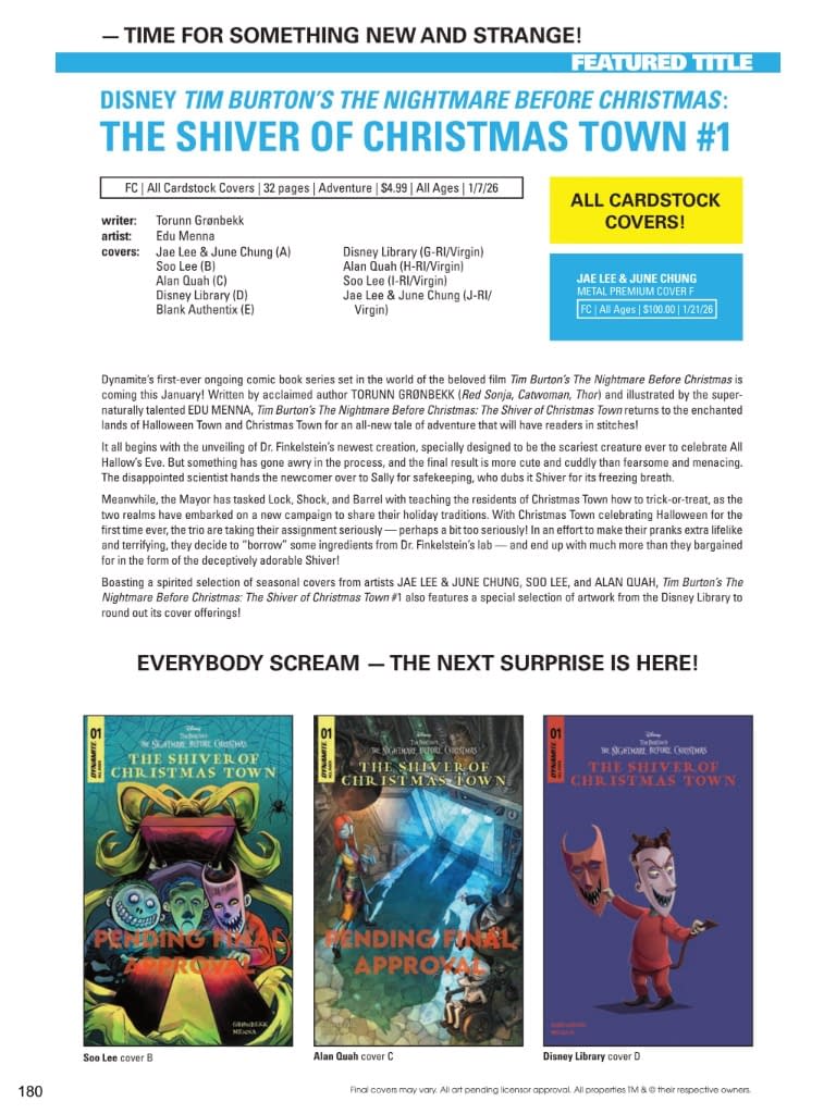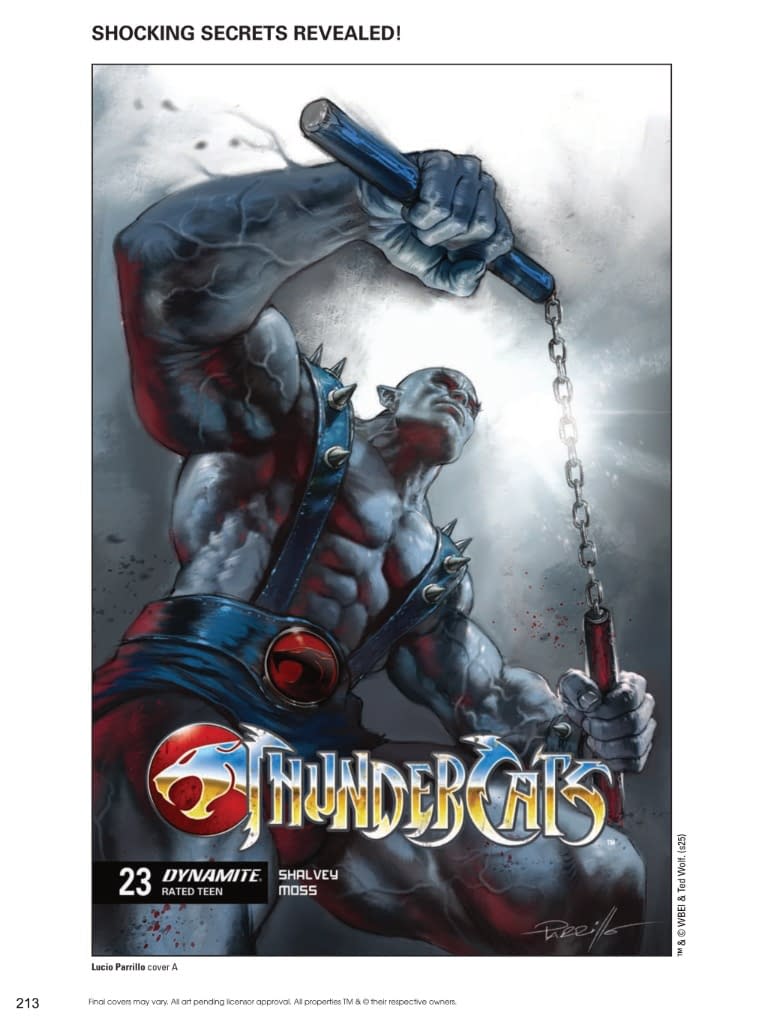 Dynamite Entertainment's January 2026 solicits and solicitarions includes Thundarr the Barbarian #1 by Jason Aaron, and Kewber Baal, Tim Burton's The Nightmare Before Christmas: The Shiver of Christmas Town mini-series by Torunn Grønbekk and Edu Menna, Gargoyles/Darkwing Duck is a new comic book series for 2026 written by Gargoyles' creator Greg Weisman and Darkwing Duck's creator Tad Stones and drawn by Ciro Canglialosi, ThunderCats Lost in Time, from Ed Brisson, Chris Campana which will only be available in a blind bag….