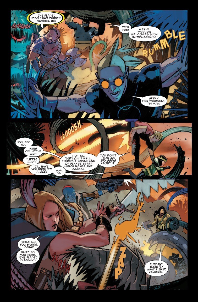 As the Trump administration forms a panel to deny that climate change exists, in the Marvel Universe, humanoids as parasites destroying the environment is a quite literal thing, at least in this preview of next week's Asgardians of the Galaxy #7, where the titular Asgardians become thorn in the side of Ego the Living Planet…