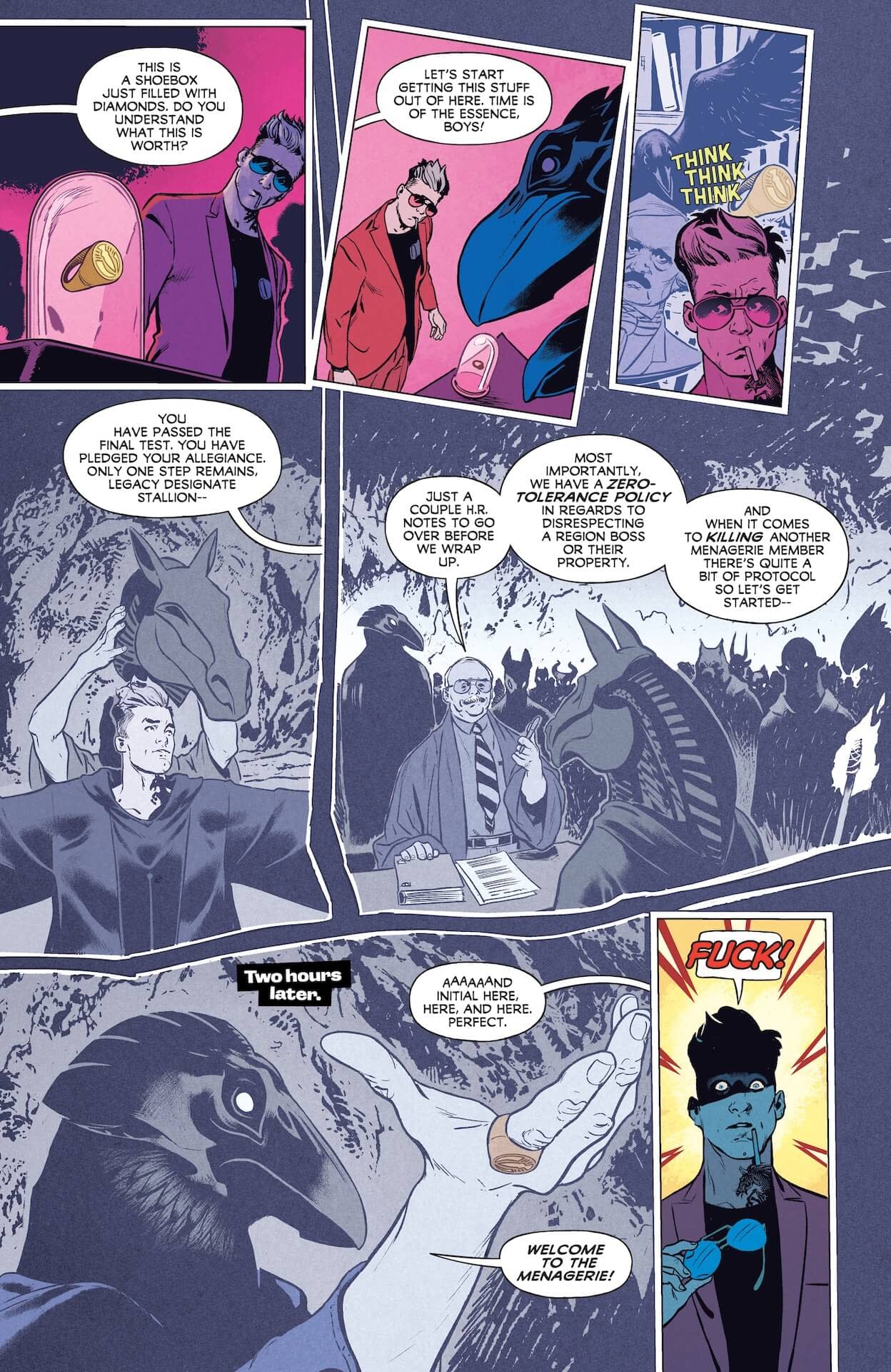 KYLE STARKS AND STEVE PUGH TAKE ON A HITMAN IN TROUBLE! Professional hitman Eddie Stallion has messed up. He's accidentally robbed the Raven, a high-ranking boss of the international cabal of assassins the Menagerie, of which Eddie is a member…or he was. Now with a price on his head, Eddie chooses to hide in the one place everyone knows he'd never go…the small midwestern town of Pluto, home of his estranged father and known hard-ass George Stallion. Looking for safe harbor, Eddie instead finds his resentful father dying of cancer, old friends looking to collect that bounty, Menagerie assassins who have wandered into town, a cancelled newspaper comic-strip creator turned local crime lord, and oh yeah, his childhood first love, too. Kyle Starks and Steve Pugh, the team behind Peacemaker Tries Hard!, present the story of a man-child assassin with some very grown-up problems. As Eddie grows more attached to the people of Pluto, he'll have to step in to solve those problems the only way a hitman knows how!