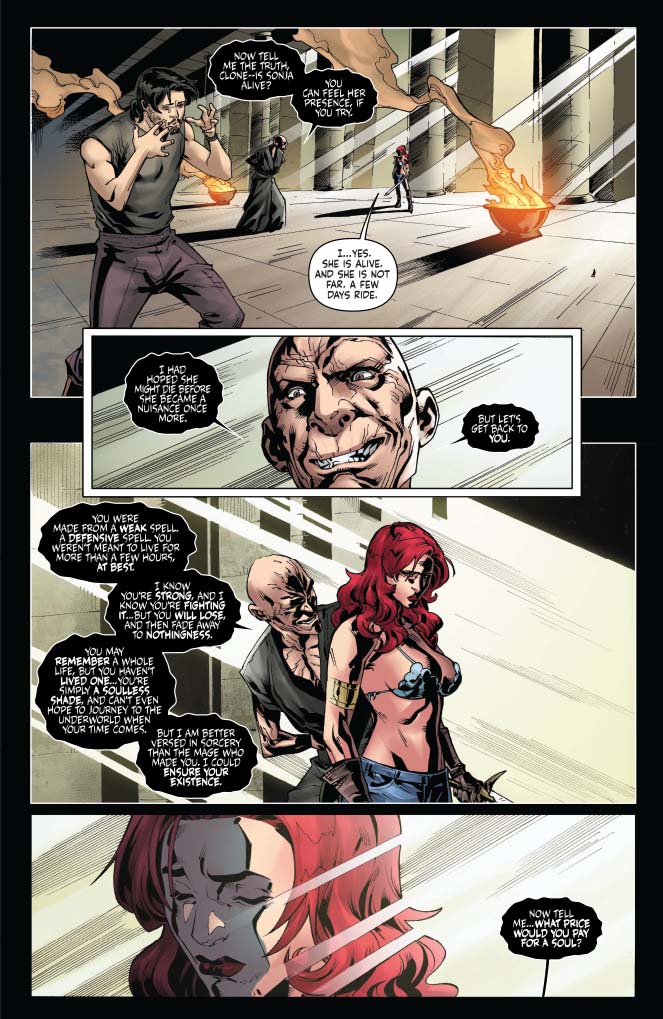 Hey look! Another Sonja! This one was created by a mix of magic — Wallace's and Kulan Gath's. She's a duplicate, and she has no place in the world. All of Sonja's memories, but she's not Sonja — and she doesn't know how long of an existence she'll have.