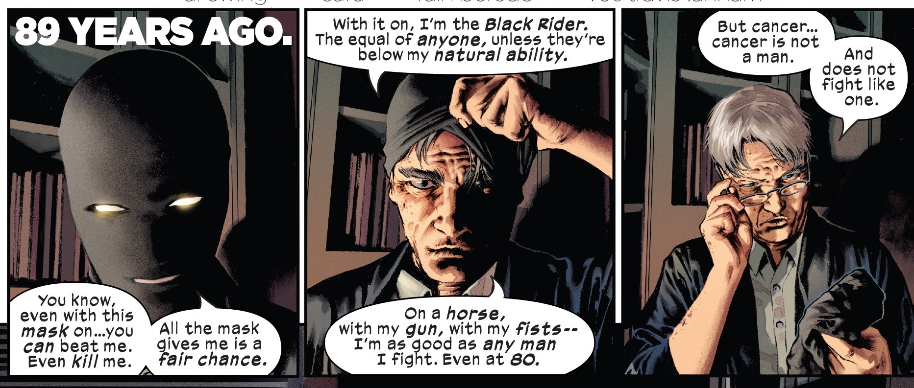 But now Marvel Comics are to publish the new adventures of The Masked Raider. And, courtesy of writer Al Ewing, he is 'connective tissue' made flesh. In both Marvel Comics #1000, today's Marvel Comics #1001 and Incoming #1 to be published in a couple of months and change.