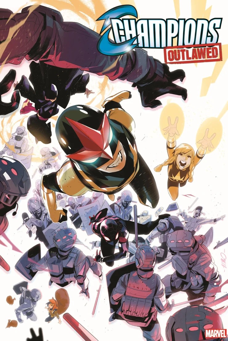 THE CHAMPIONS RETURN IN TROUBLED TIMES! A law is passed that goes against everything Ms. Marvel, Nova and Spider–Man founded the Champions for…But the world still needs heroes, even if the world doesn't want them right now. After Ms. Marvel makes an unexpected and emotional announcement that her team won't go down without a fight, a group of teen vigilantes gathers to plan their next move. But the C.R.A.D.L.E. task force is hot on their trail, and there's a spy in their midst… Eve L. Ewing (IRONHEART, OUTLAWED) and Simone Di Meo (IMMORTAL HULK: THE BEST DEFENSE and VENOM: ACTS OF EVIL) team up for a dramatic new era of Champions that will define Marvel's teen heroes for years to come!