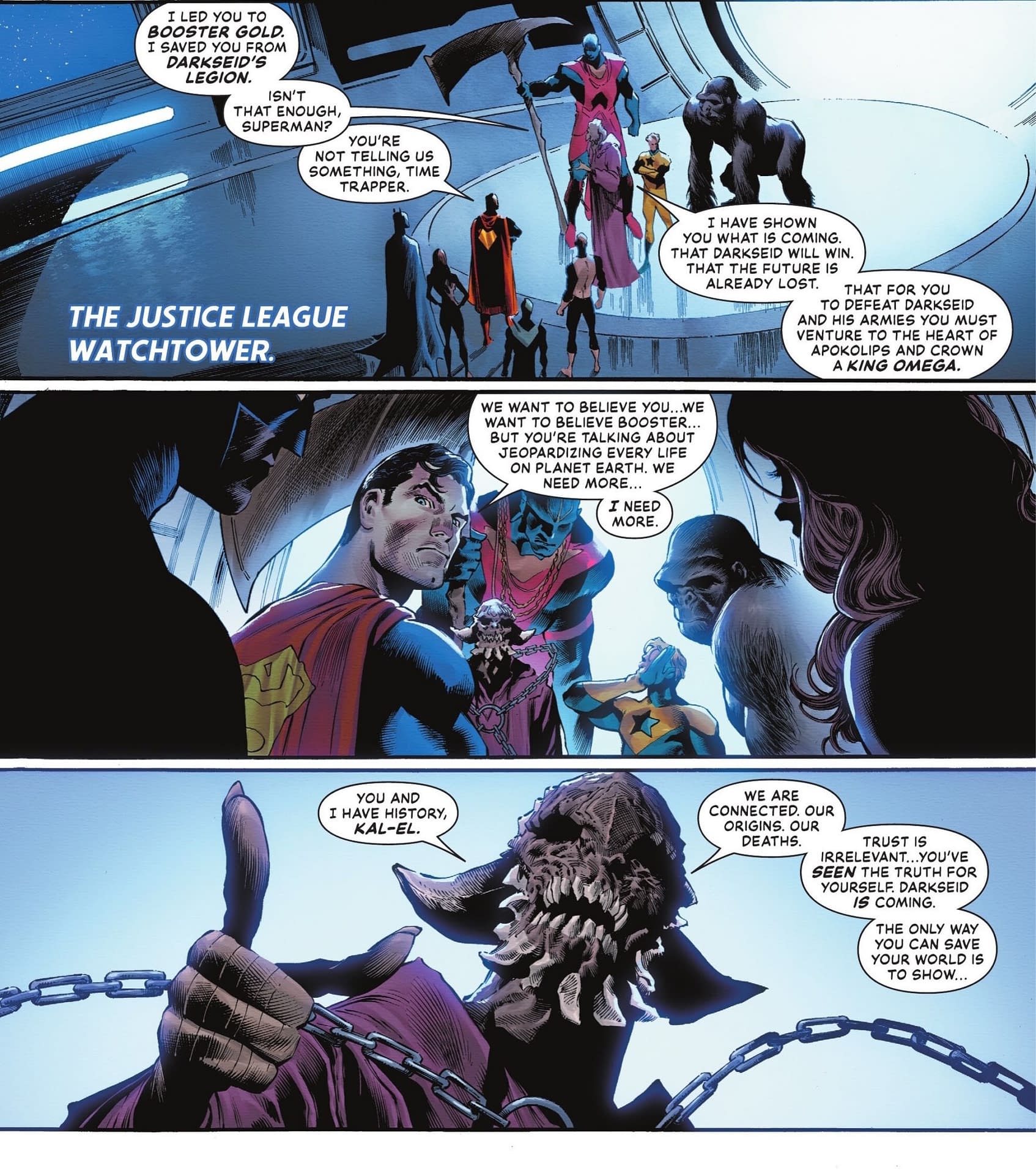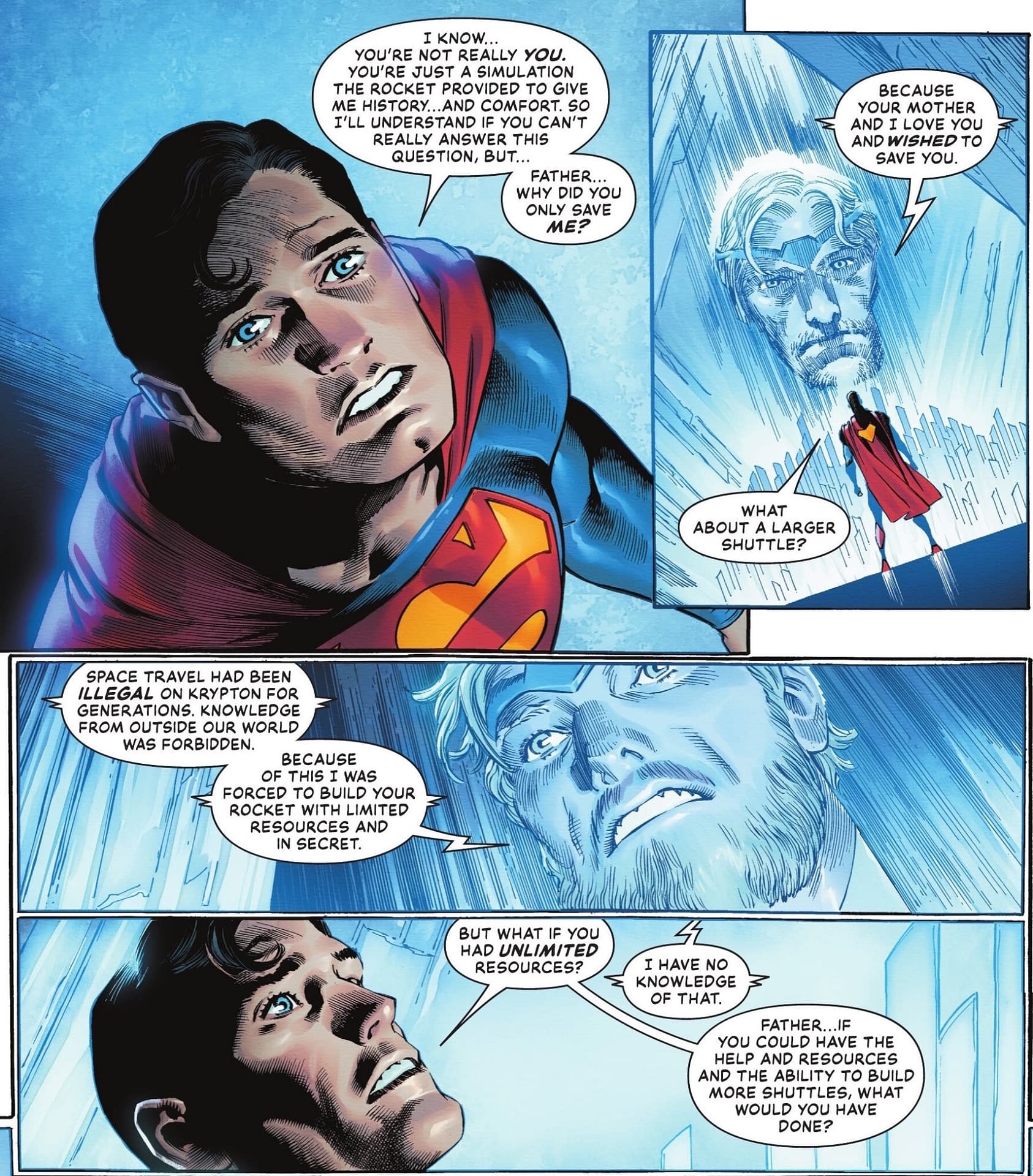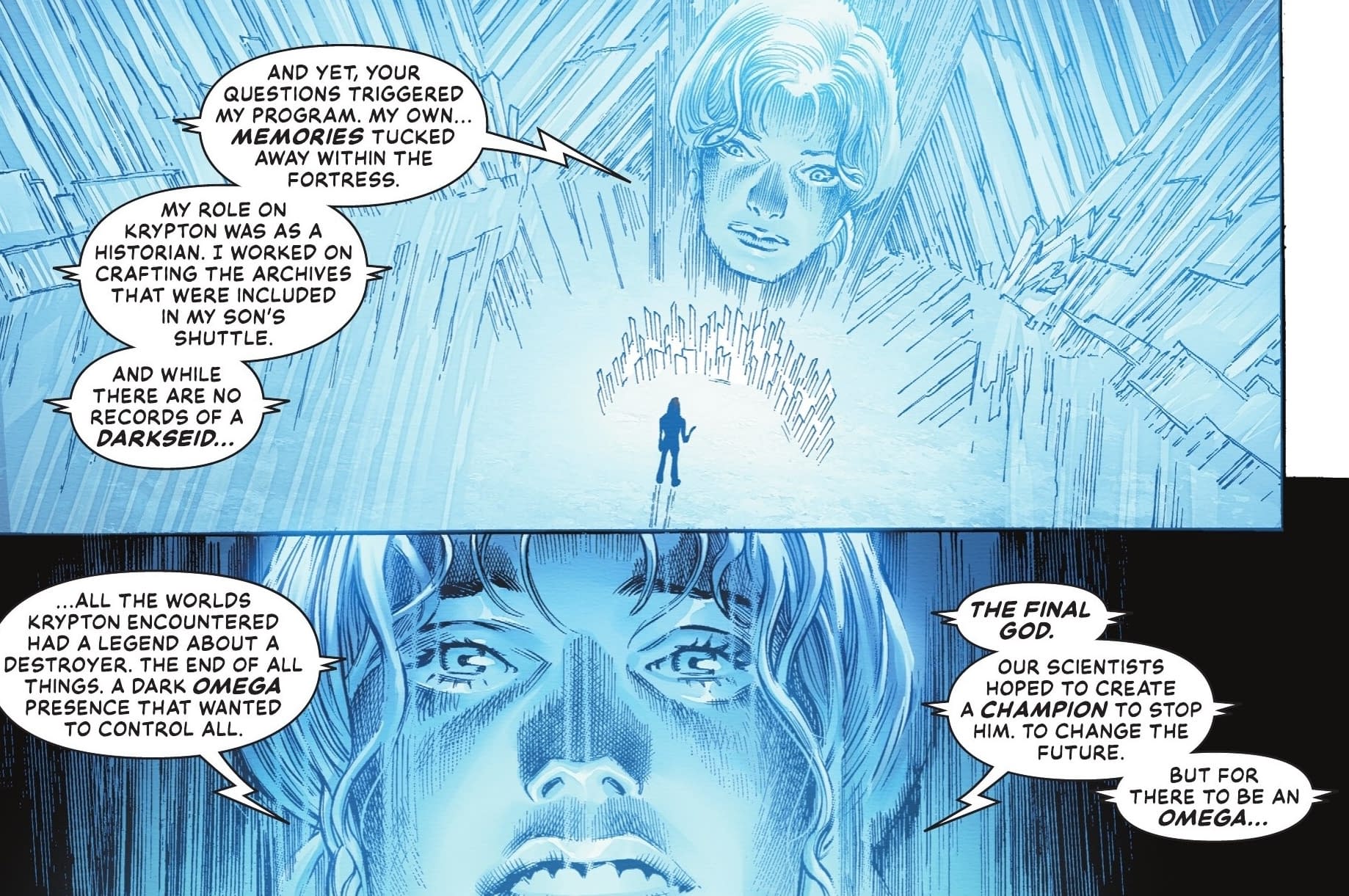 But also nothing about Darkseid or the King Omega, which we saw in ancient Krypton in previous issues. Turns out Superman is asking the wrong AI.