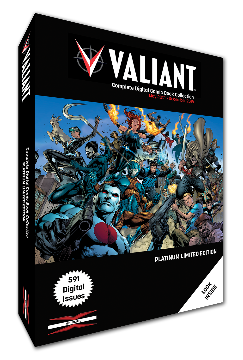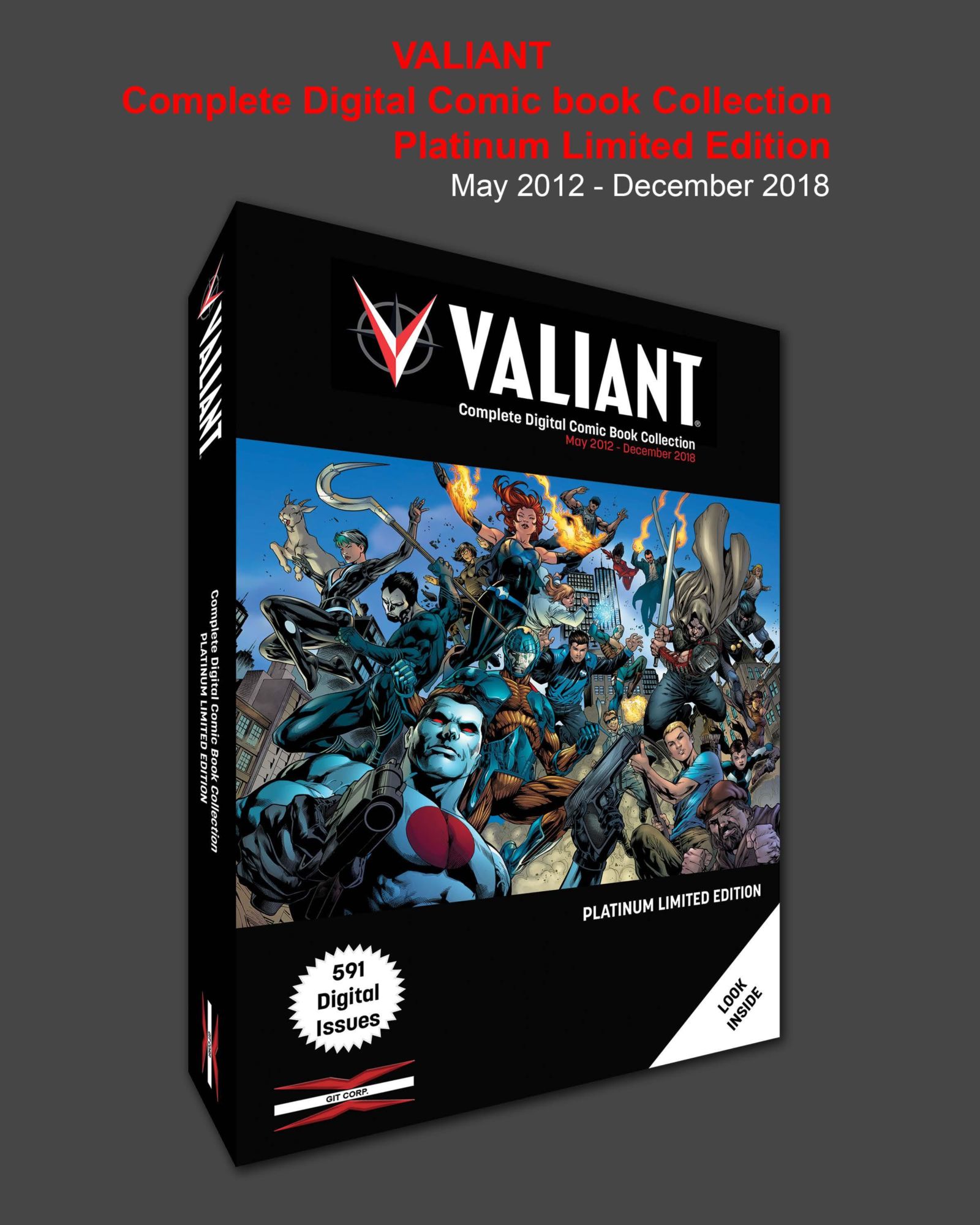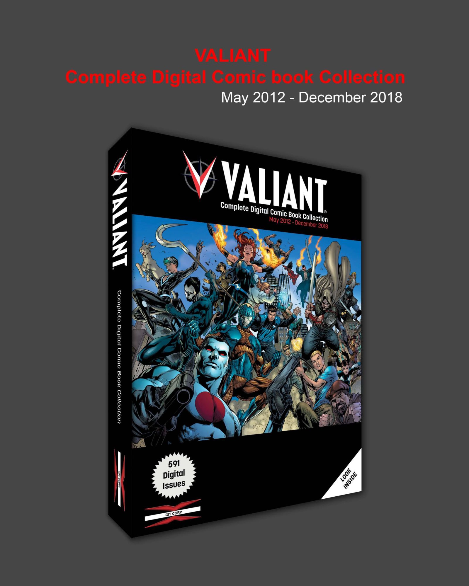 A flash drive containing the entirety of Valiant's output since the 2012 relaunch with X-O Manowar, Harbinger, Bloodshot and Archer & Armstrong. 591 comic book stories for $60. That works out at about ten cents each.