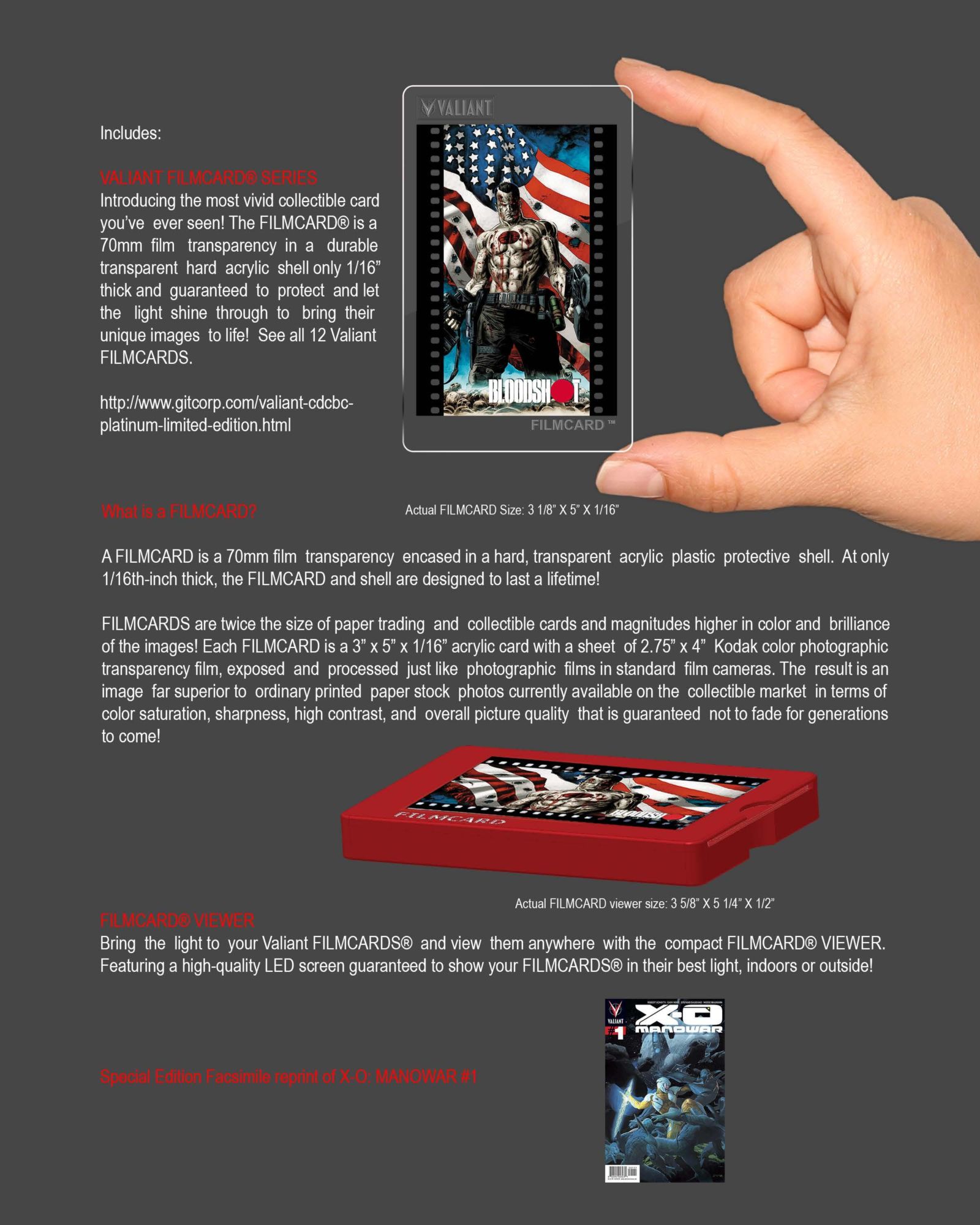 There's also a platinum edition for $90, with 12 pre-slabbed 'filmcards', a filmcard viewer and a special facsimile edition of X-O Manowar #1.
