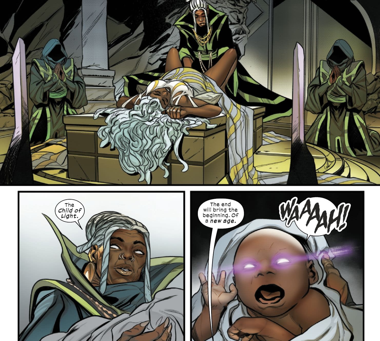 As Storm gives birth to her child with T'Challa (or does she?) and she seems to have someone else's eyes altogether.