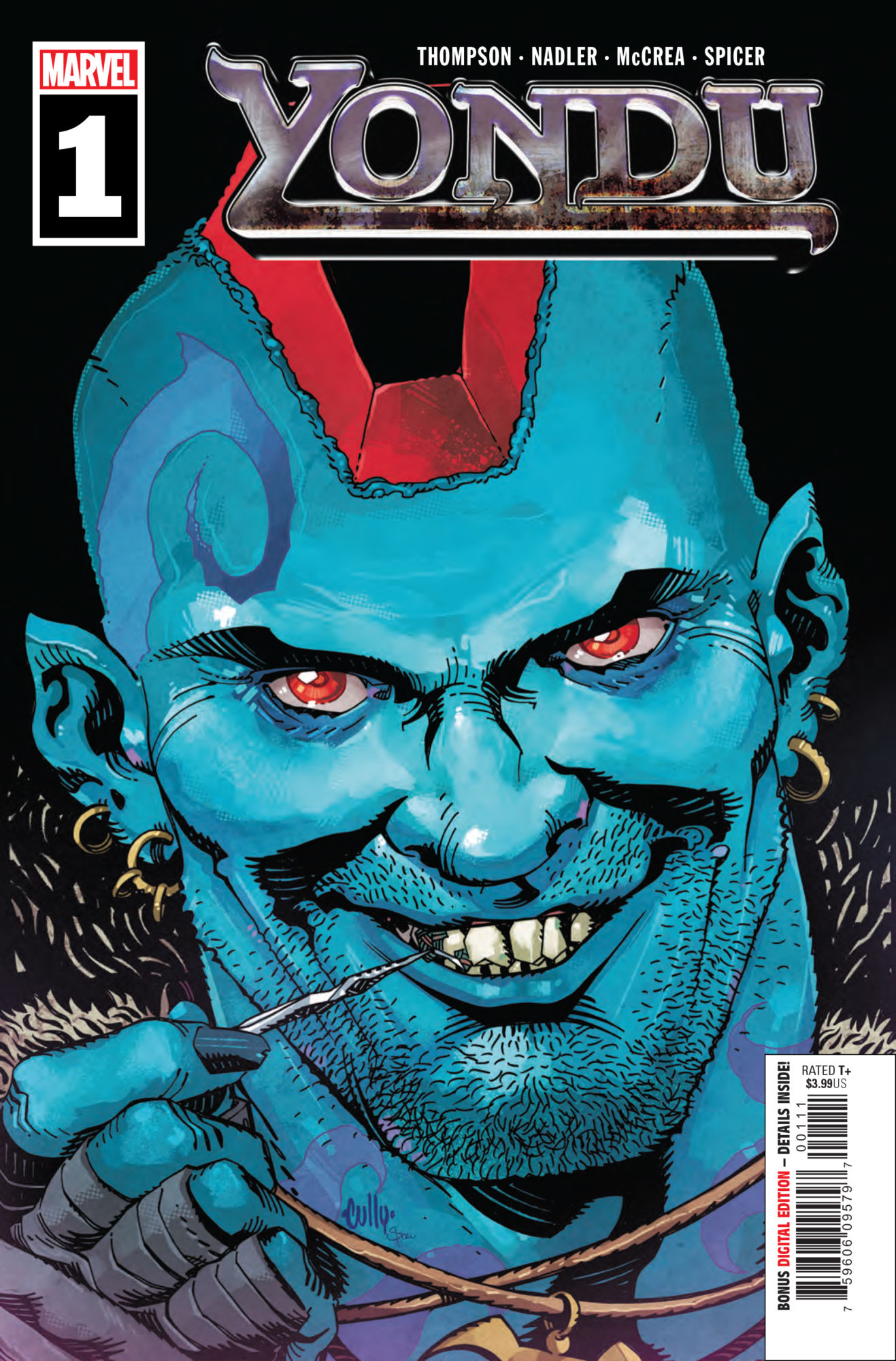 Yondu, lone Ravager and all-around scoundrel is about to hit the biggest pay day of his life when he stumbles upon a dangerous new weapon! But when this artifact turns out to be deadlier than he bargained for, will the reward outweigh the risk as Yondu finds himself targeted by a mysterious mercenary? Plus, when an unexpected visitor from the future turns up to stop Yondu, it begs the question: exactly how bad did he screw up?! Find out in this all-new miniseries from ZAC THOMPSON and LONNIE NADLER (AGE OF X-MAN, GUARDIANS OF THE GALAXY ANNUAL) and JOHN MCCREA (Dead Eyes)!