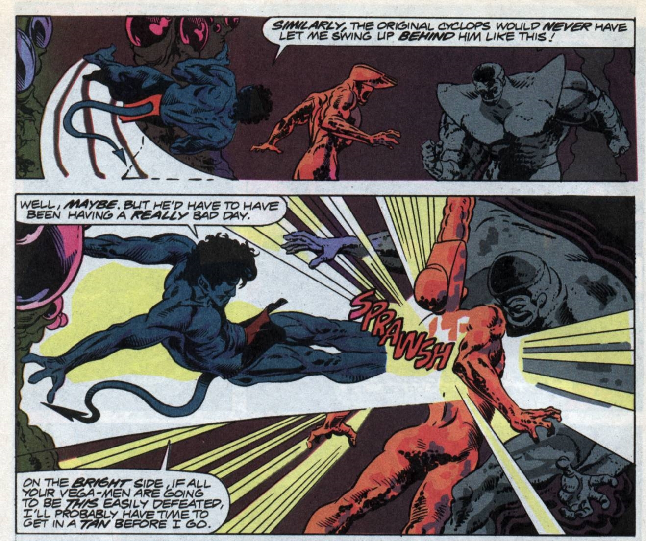 Ah, Excalibur #31, published in the early nineties, in the dark, dark days of the between-Alan Davis runs of that mutant spinoff. I've been rereading a few in an attempt to find the first US mentions of Marvel being the 616 universe. Excalibur #44 is out earliest so far. Any previous?