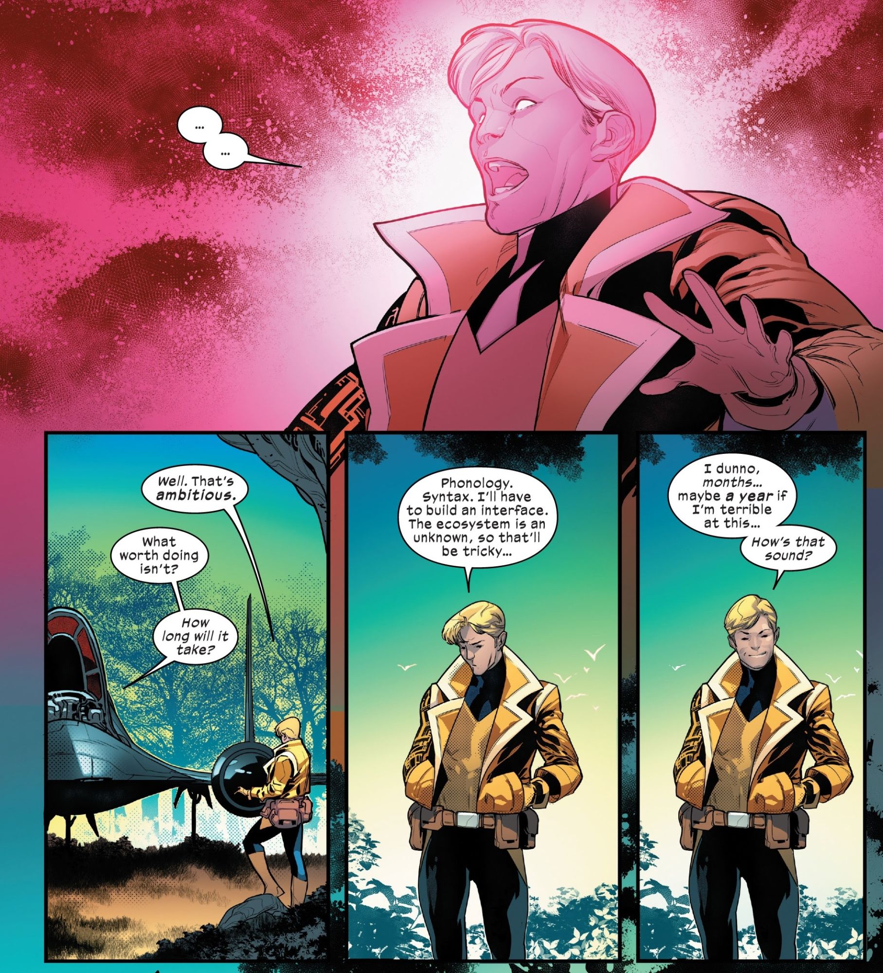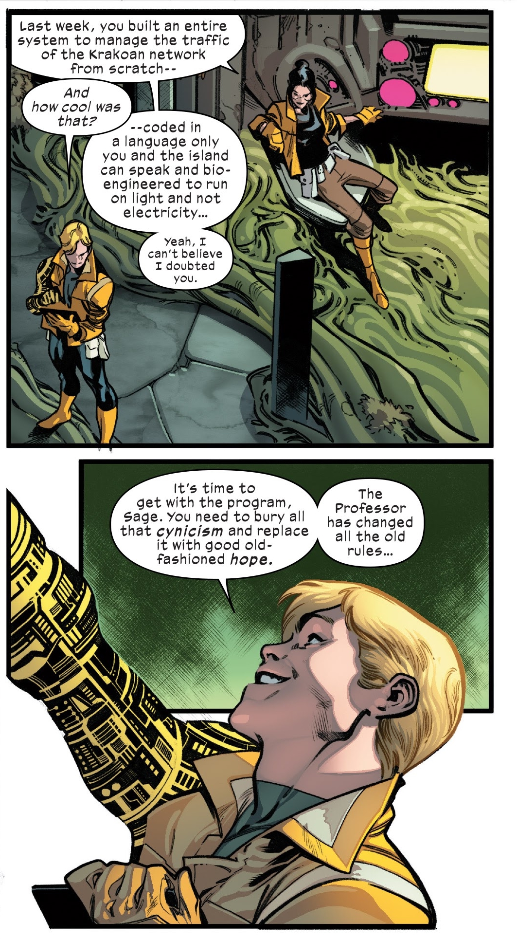Controlled by Xavier… what was the point of that mind meld? Is Doug Ramsey being controlled by the Professor? By Krakoa? And it the X-Men are pod people, is this a Krakoan invasion of Earth, of Mars, of the universe? With Krakoan flowers everywhere – and humans ingesting the Krakoan seed products to heal, to fight dementia and to extend human life?