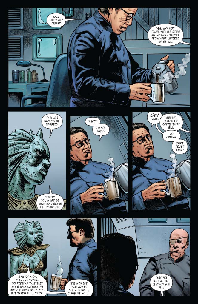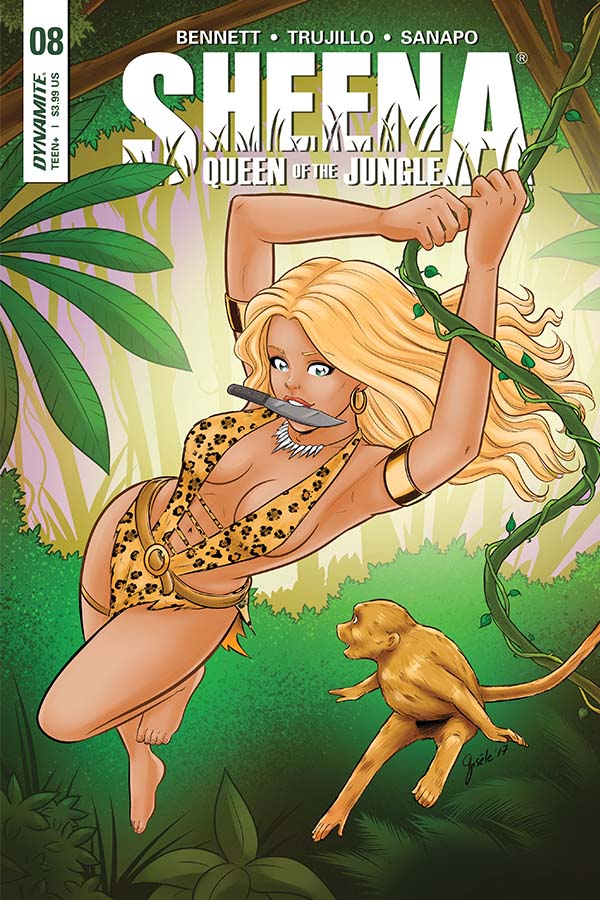 Dynamite has sent us exclusive extended previews for Jeepers Creepers #1, KISS / Army of Darkness #3 and Sheena: Queen of the Jungle #8 as well as previews for Battlestar Galactica vs Battlestar Galactica #4 and Pathfinder: Spiral of Bones #2.