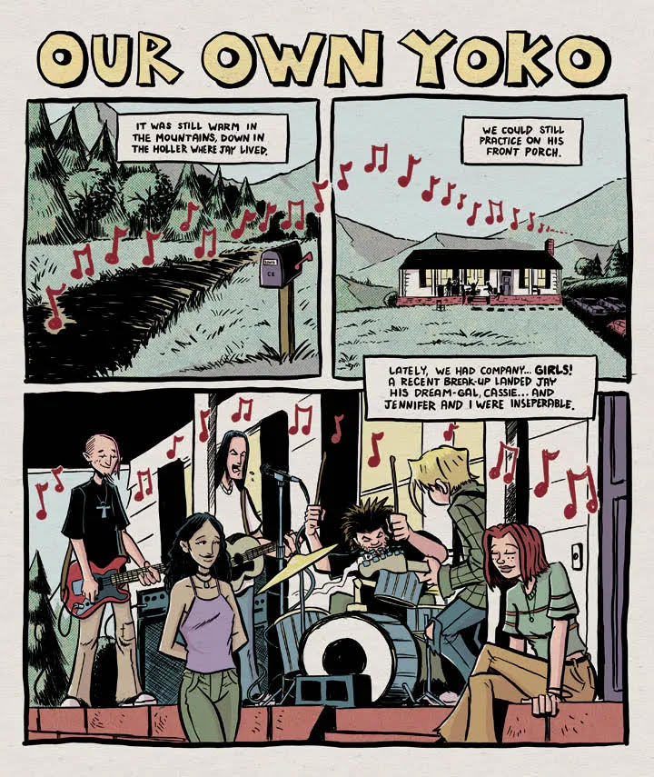 Set in the 1990s among the Appalachian Mountains of Virginia, Holler follows the misadventures of four young friends who form a garage band, while navigating the ups and downs of teenage existence. Featured stories this issue include: "Our Own Yoko", the future of the band is at stake when girlfriends are invited to band practice; "Roar of the Beast", cryptozoology is studied in Mark's youth group. Also included this issue are one pagers "Get A Real Job" and "She Lives on Love Street". Finally an alt-rock, grunge-fueled comic that everyone can enjoy!