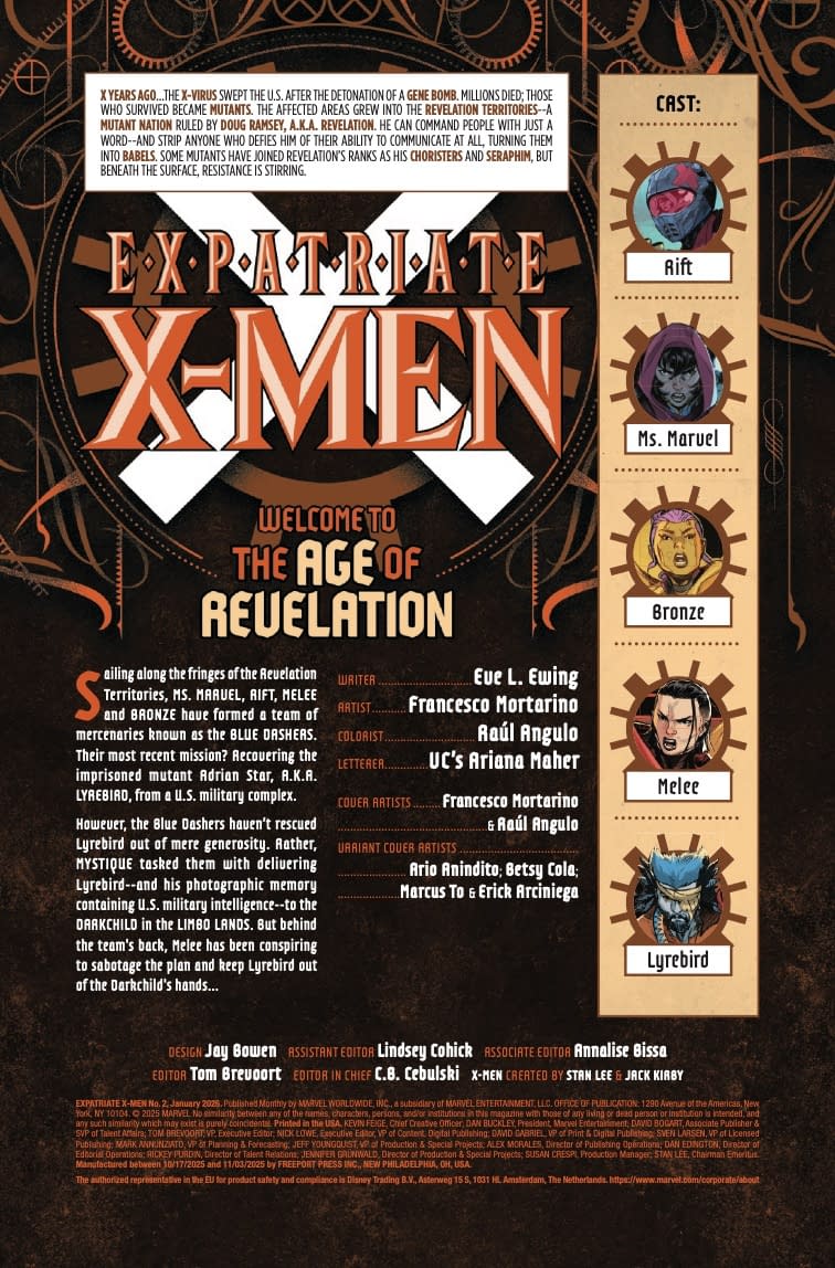 - Cover image for 75960621368900216 EXPATRIATE X-MEN #2 MARCUS TO VARIANT [AOR], by Eve L. Ewing & Francesco Mortarino, in stores Wednesday, November 26, 2025 from Marvel