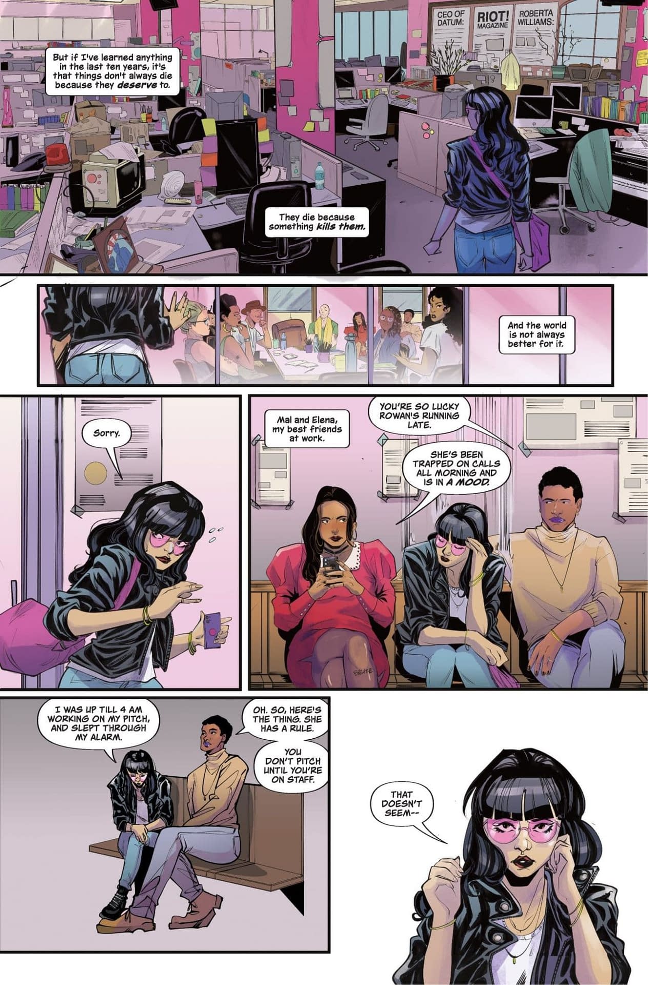 - The comic follows Kirby and her agoraphobic roommate teaming with defunct magazine RIOT! staff to bring justice against consequence-free oligarchs