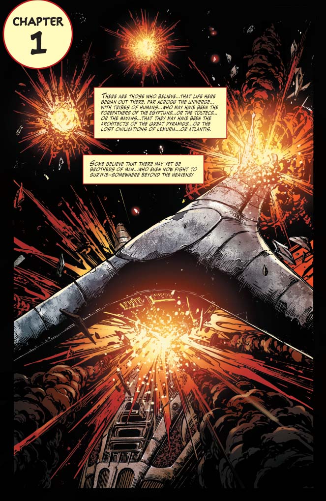 At last! The epic story you've been dying to see is here, a galaxy and timeline-spanning saga bringing the two very different (and yet so very much alike) crews of the BattlestarGalactica's series together. But don't expect this historic meeting of heroes to be friendly: they have no idea why they have been brought together, or what the result of this unprecedented meeting is. And it starts here as the legendary Commander Cain and the crew of the Pegasus are revealed to be alive, and have encountered an individual they never thought they would meet: the last Cylon. All this has happened before, but there will NEVER be anything like it again!