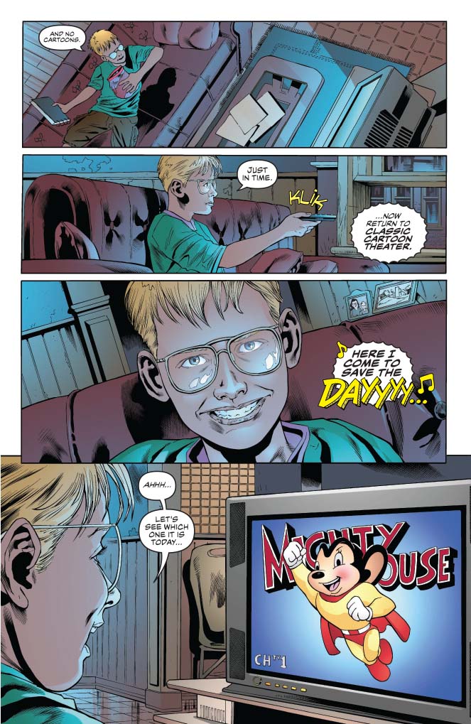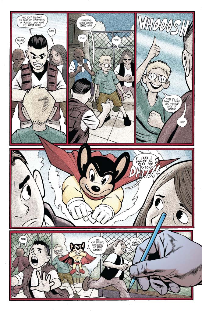 You're the world's greatest hero, exiled to another dimension with no way back. Trapped in an alien world, where not even the laws of physics work the way they should. The only person who even believes you exist is a young kid whom no one will listen to. Yet, you're the shining light that this drab, cynical world needs to restore its color and life. Oh — and you're a cartoon mouse. Here comes Mighty Mouse to save the day, in his most unexpected adventure yet… right here, in the real world! COLLECTS ISSUES 1-5 + BONUS CONTENT