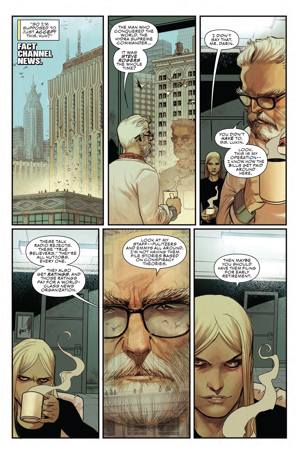 Next week's Captain America #9 dives deep into the seedy underbelly of the journalism industry, as Alexa Lukin attempts to convince the Fact News Channel to run a story defaming the titular Captain America. You can watch this attempt to influence the fourth estate in the preview below…
